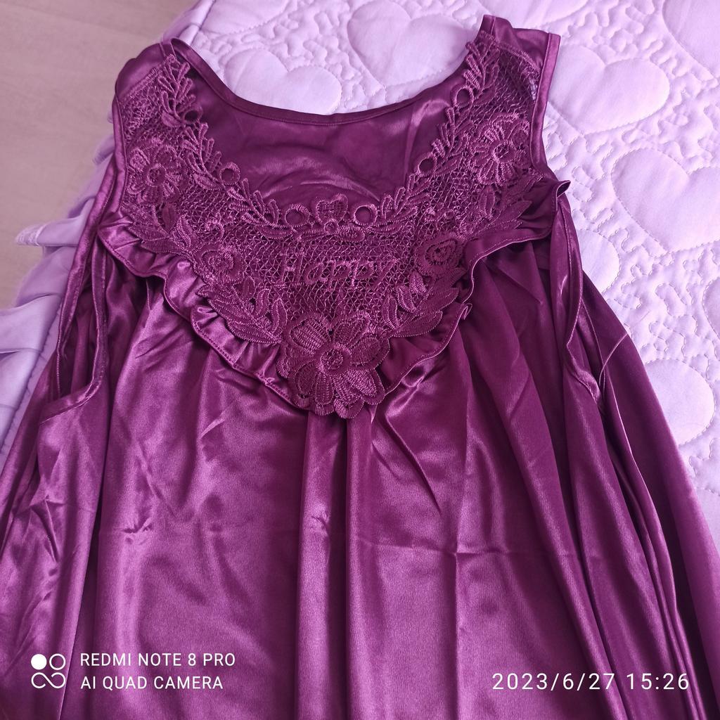 The nightgown is very pretty, a deep purple color. It fit well for my size 54. Thank you