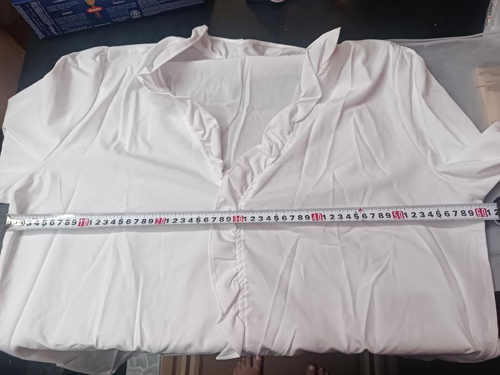 The blouse is good, but you need to pin it at the chest, it sticks out a lot, it feels nice on the body.