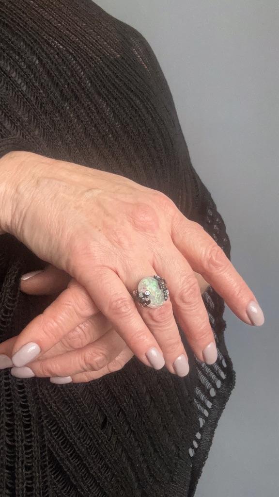 The ring does not match the picture at all! Instead of a large opal - a small piece of plastic, the flowers and twigs are ugly and flat, and its size fits a rather large man's hand! Ugh, to deceive people like that!!!