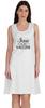 This cute and versatlie tunic dress from inkmeso paired with jeans, short, legging for many occasions like home, daily. Typography Graphic Design With saying Jesus Is My Vaccine'' dress. dedicated for those for those who are against immunization, anti vaxxing. This premium dress is made of lightweight fine jersey fabric. It features comfy stretchy fabric, scoop neck, sleeveless, straight hemline, knee length, A-line dress, graphical design, every day wear.