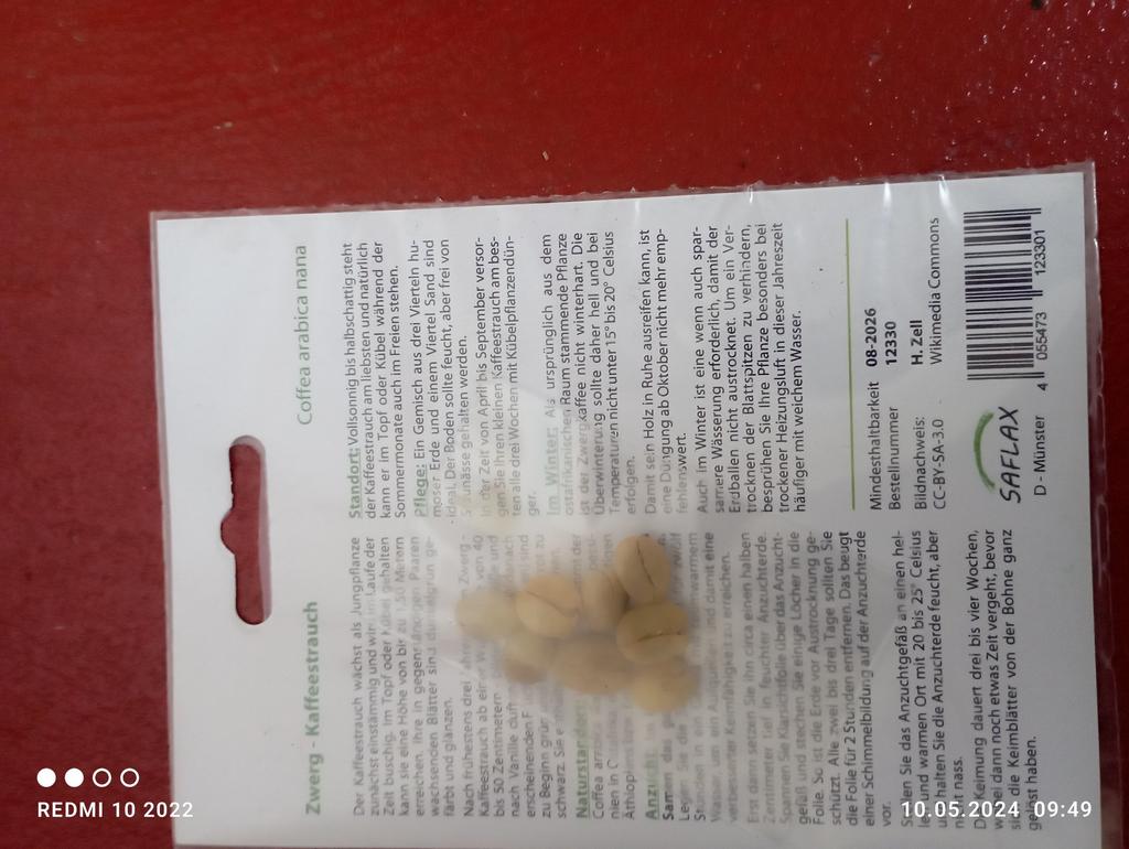 Seed propagation indoors is possible throughout the year. To increase the germinability, you should place the seeds overnight in warm water for priming. Then plant the seeds about 1 cm deep in moist potting compost and cover the seed container with clear film to prevent the earth from drying out. Don’t forget to make some holes in the clear film and take it every second or third day completely off for about 2 hours. That way you avoid mold formation on your potting compost. Place the seed container somewhere bright and warm with a temperature between 20°C and 25° Celsius and keep the earth moist, but not wet. The germination takes about three to four weeks, while it takes a bit longer until the cotyledons are fully separated from the beans.