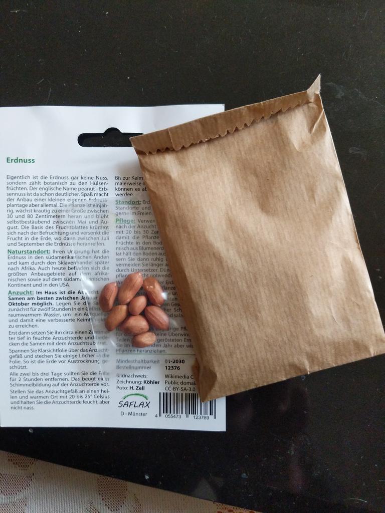 You might want to choose a big pot (between 20 and 30 cm in diameter) for planting the seedlings after seed propagation. That way the plant has enough space to sink its fruits into the earth. To have a nice loose soil, it is best to use a mix of potting compost, sand and clay granulate. You can water penetratingly, but be aware of waterlogging in the saucer. The Peanut Plant doesn’t need any fertilizing. As soon as the leaves of your plant start withering, you can just remove the whole plant from the pot, clean off the dirt and let it dry for two days. You may roast your Peanuts and add salt to your liking in an oily frying pan, to get a better taste and to avoid a possible mold fungus.
