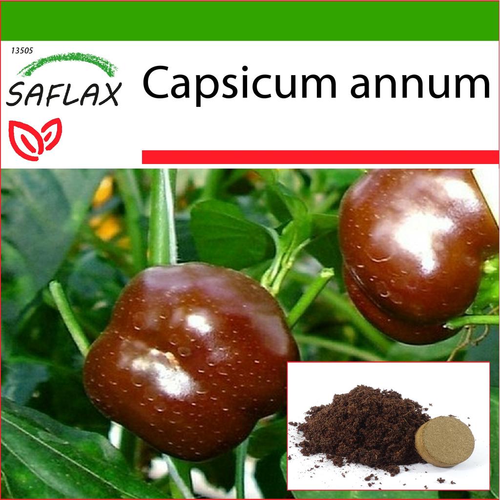 SAFLAX Pepper - Sweet Chocolate X - 10 Seeds - With Potting Substrate for Better Cultivation - Capsicum Annum
