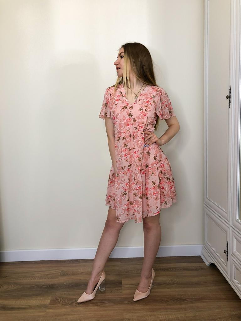 It is charming, for a height of 165 above the knees, the 98 sat well, the fabric is like crepe, sweet and airy, thank you Jum, in the photo it looks paler than it is in reality