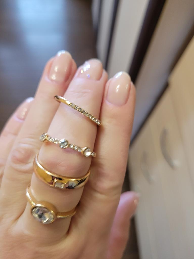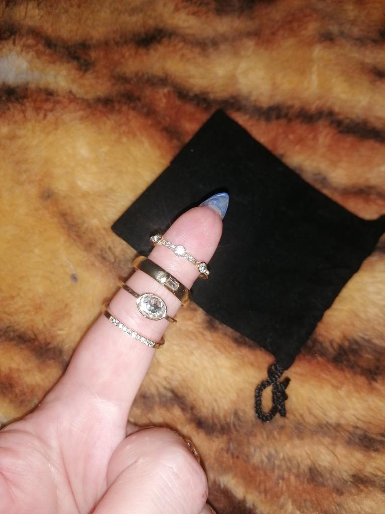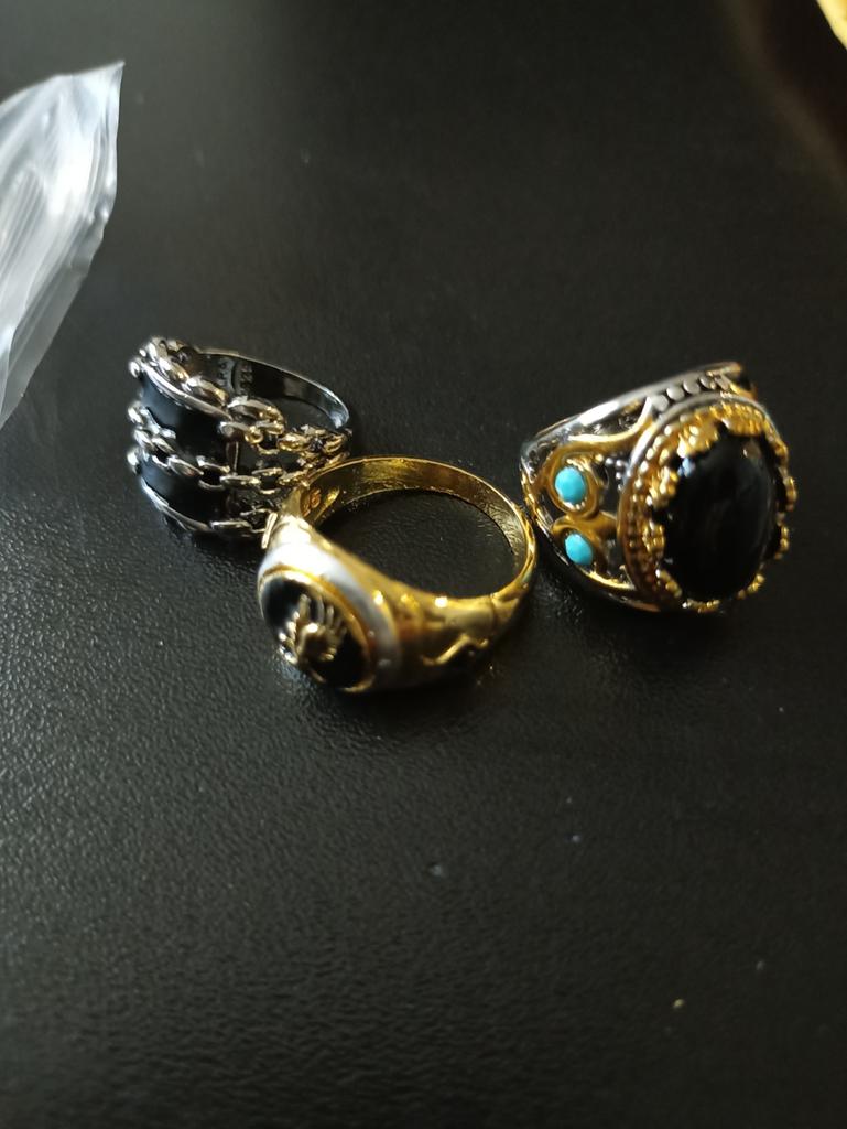 A little disappointed with the quality... on the ring with an oval stone, you can see that it is glued crookedly, on a wide ring with a rectangular stone of unevenness. So for a child to play, you can buy but not for yourself. The photo on the site does not match what was received. Although they were packed in a black bag, I scored one point for this ...