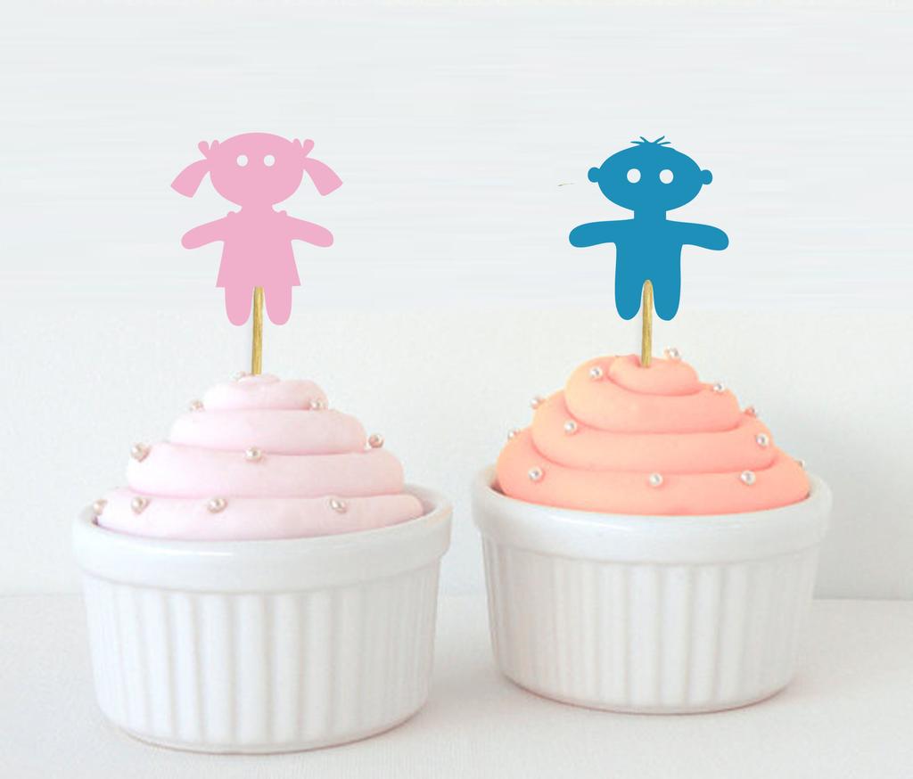 Darling Souvenir| Gender Reveal Cupcake Toppers| Boy Or Girl| Twins Baby Shower Dessert Decorations - Pack Of
