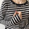 O-neck Long Sleeve Female Cotton Tees Spring Summer Ladies Striped T-shirs Casual Loose Women Pullovers Tops