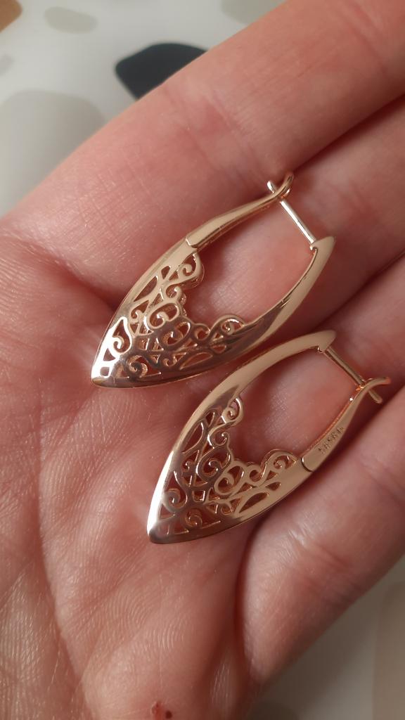 The earrings are beautiful. Gold color. Exquisitely made. They came on time. I recommend