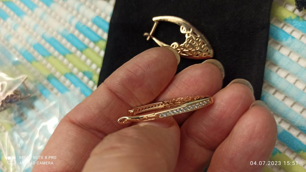 Very beautiful earrings, all the stones are on the city, the clasps work. Thanks Jum for a good product.