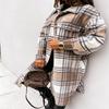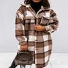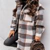 Women Plaid Long Woolen Coat Fashion Long Sleeve Button Lapel Office Ladies Mid-length Coat