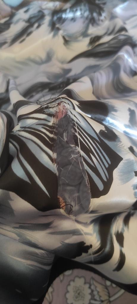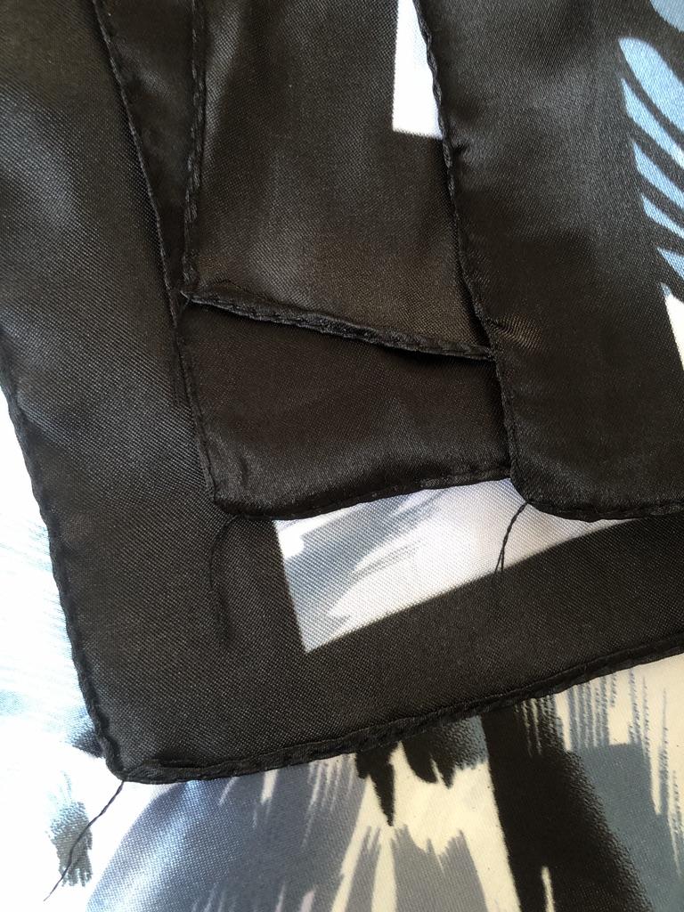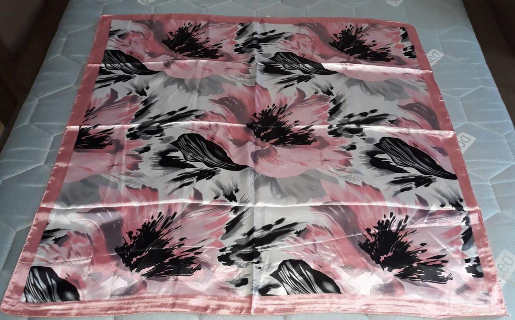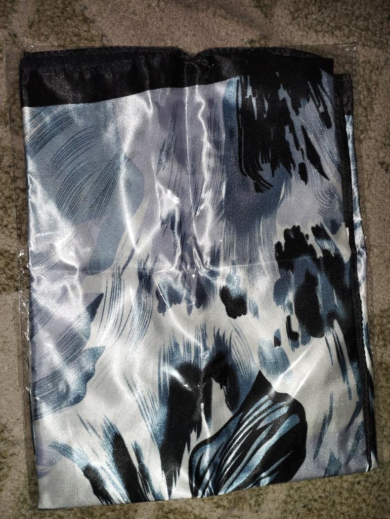 The scarf is very beautiful and shiny, pleasant to the touch. The seams are in perfect order. Photo 2 - packaging.