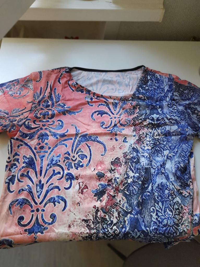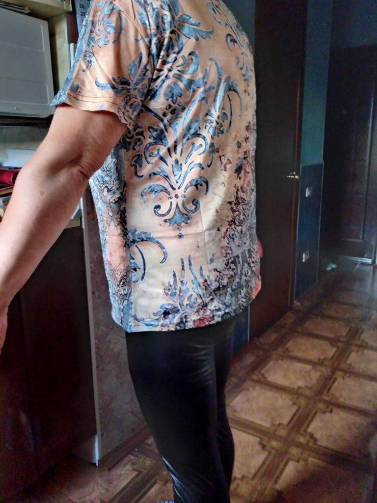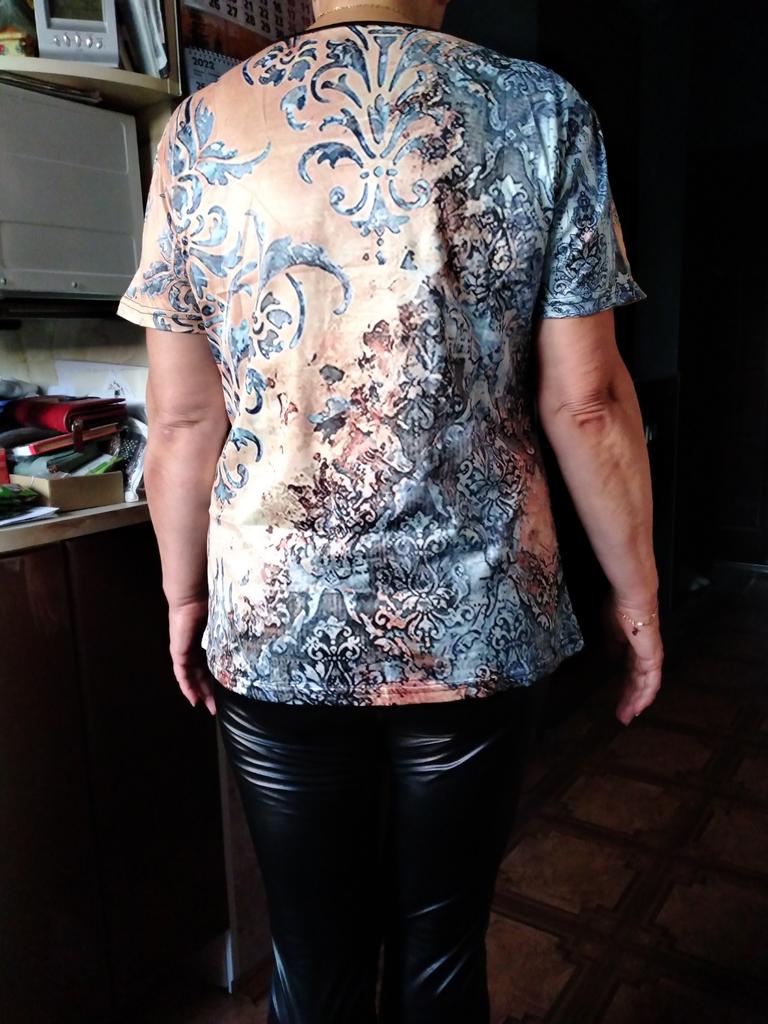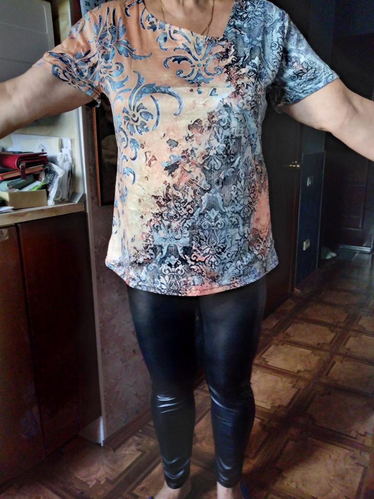Size 56 is too big, the pattern is blurry and looks completely different, the neckline is very stretched when sewing. I will only wear it at home, I won’t go out wearing this.