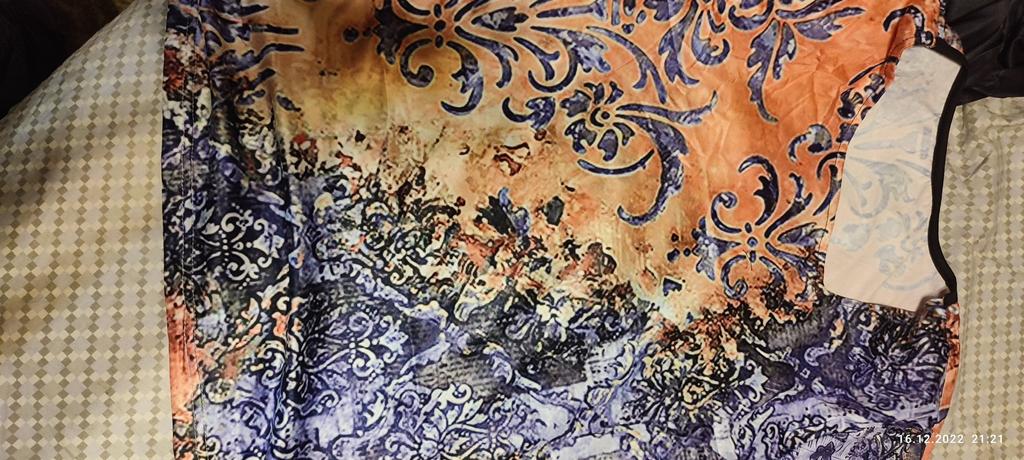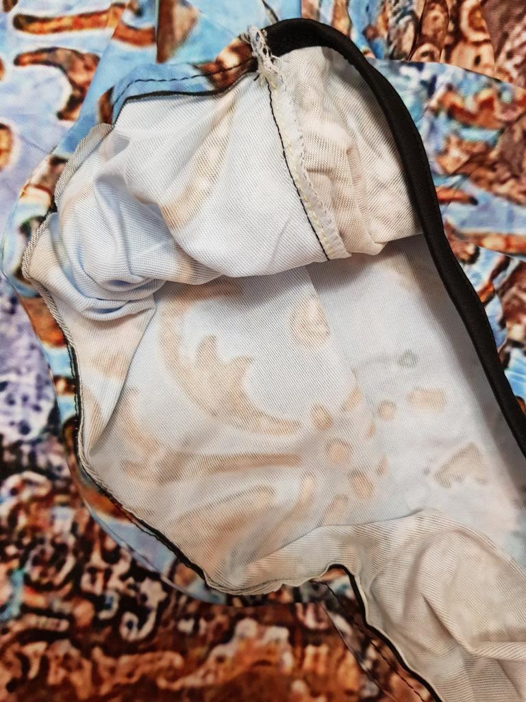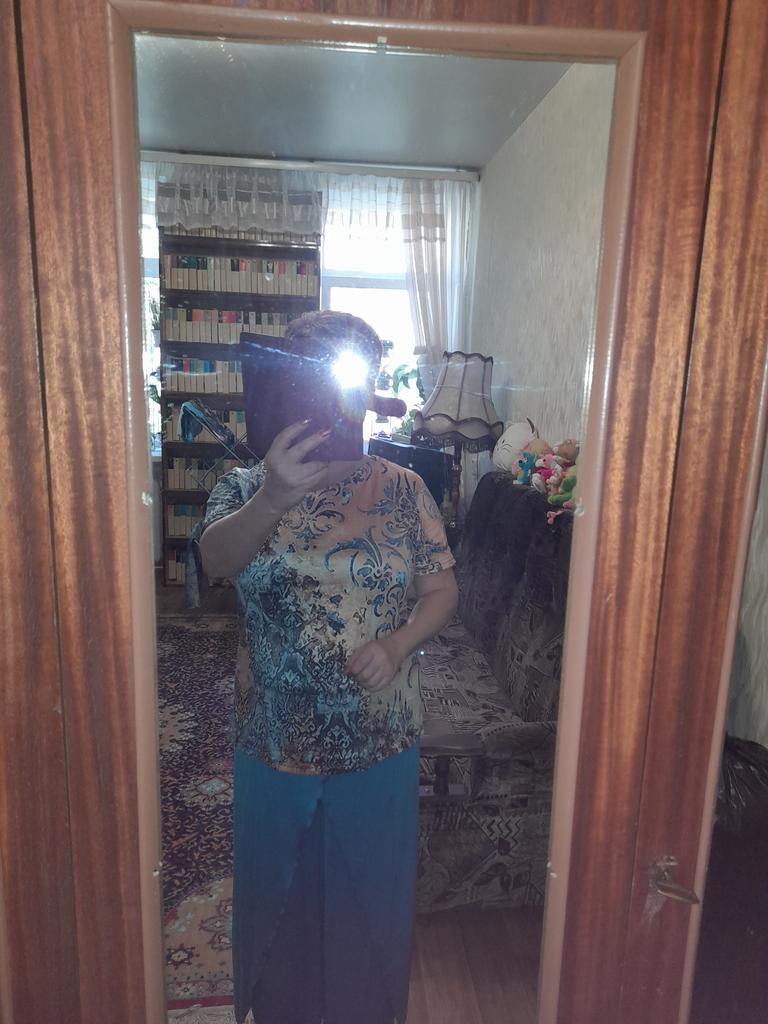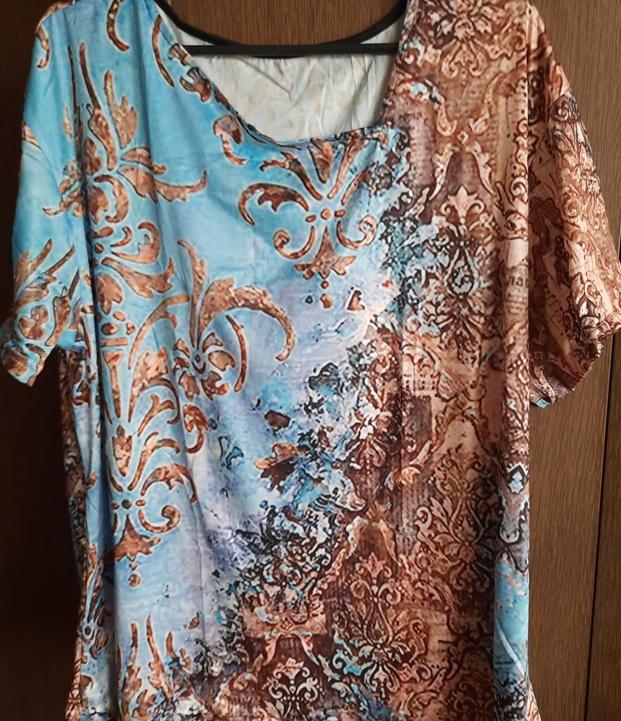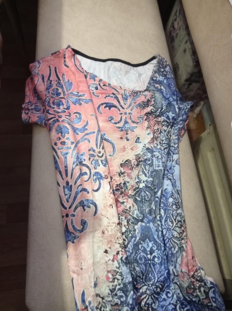 Size 56 is too big, the pattern is blurry and looks completely different, the neckline is very stretched when sewing. I will only wear it at home, I won’t go out wearing this.