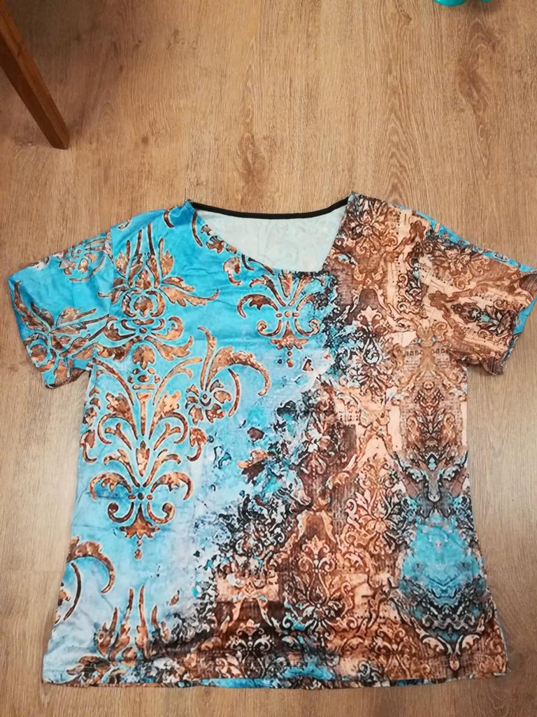Ladies 3D Print Sequins Irregular Collar Short Sleeve Base Outing T-Shirts for Women