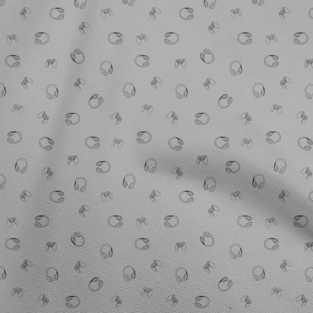 oneOone Cotton Flex Gray Fabric Retro Headphones Fabric For Sewing Printed Craft Fabric By The Yard 40 Inch