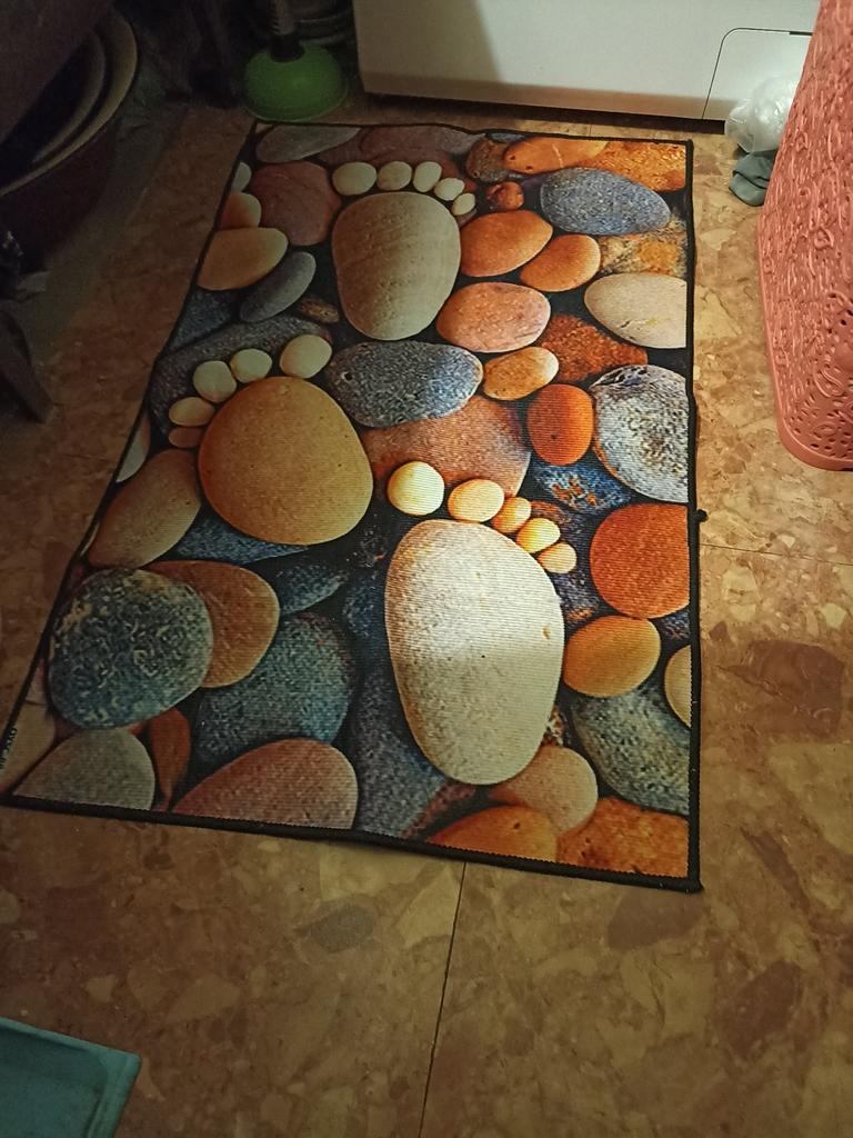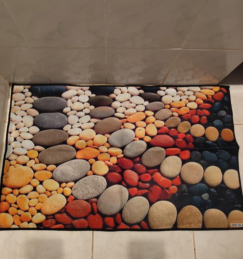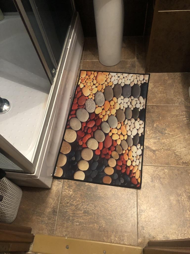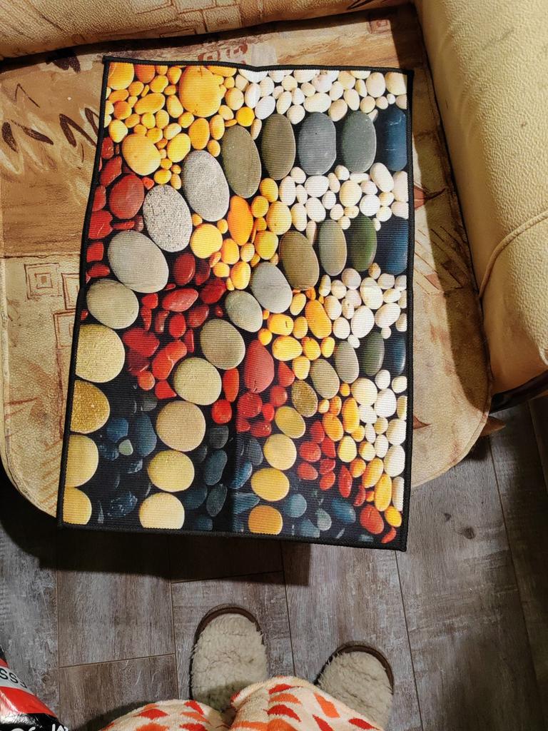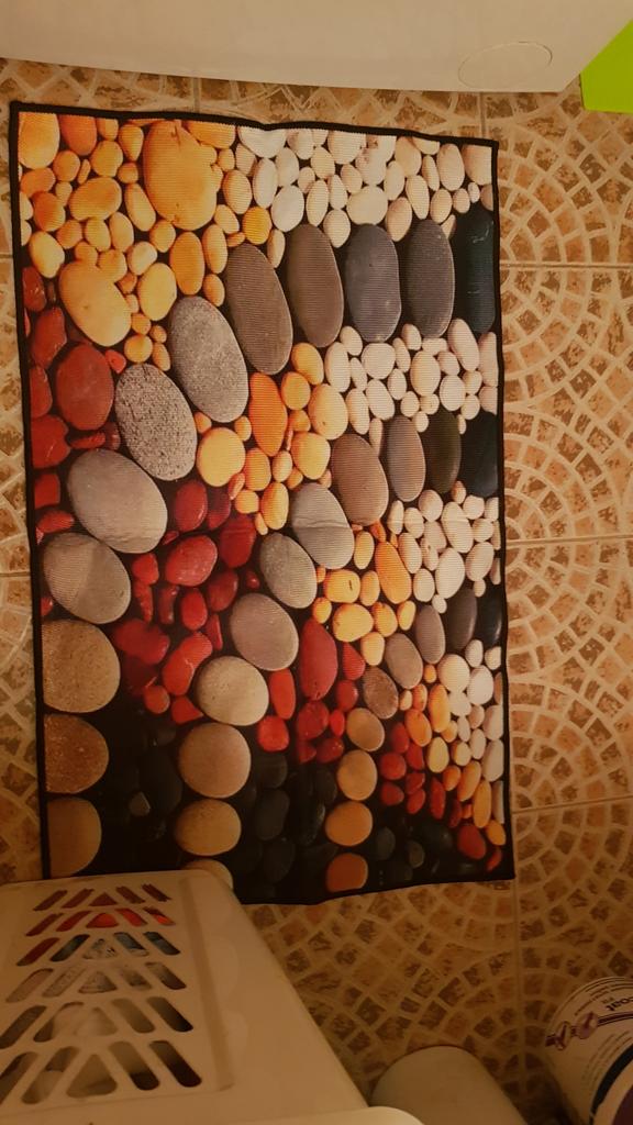 Bright, beautiful, but it slides on the tiles, so I’m taking off a star