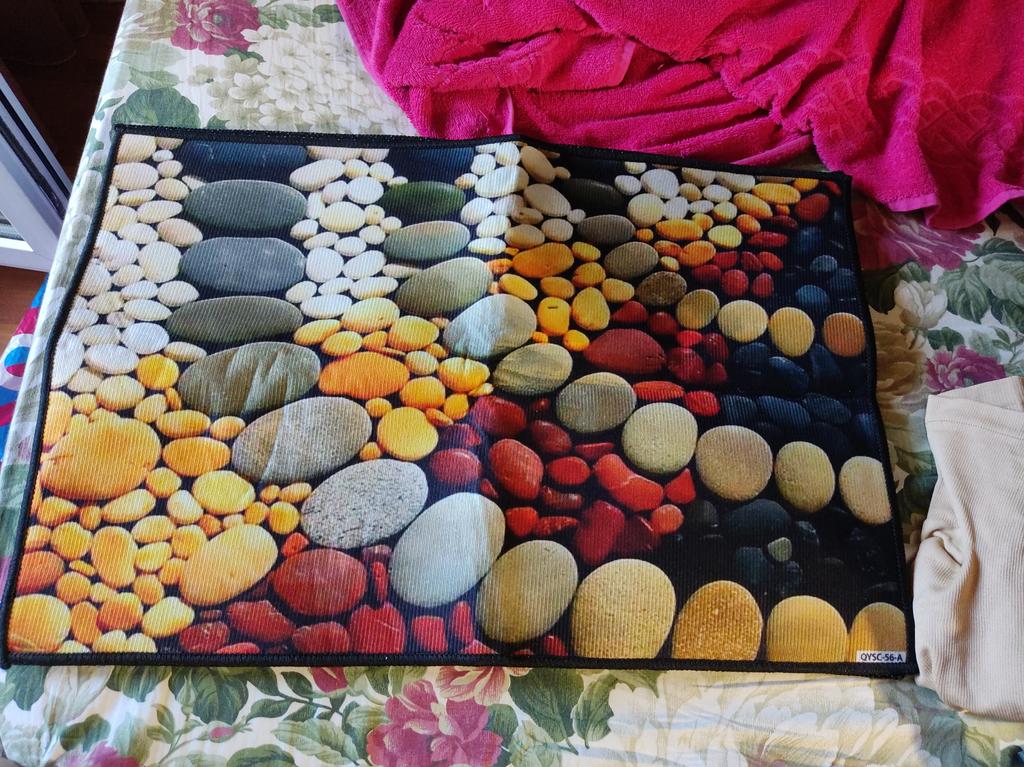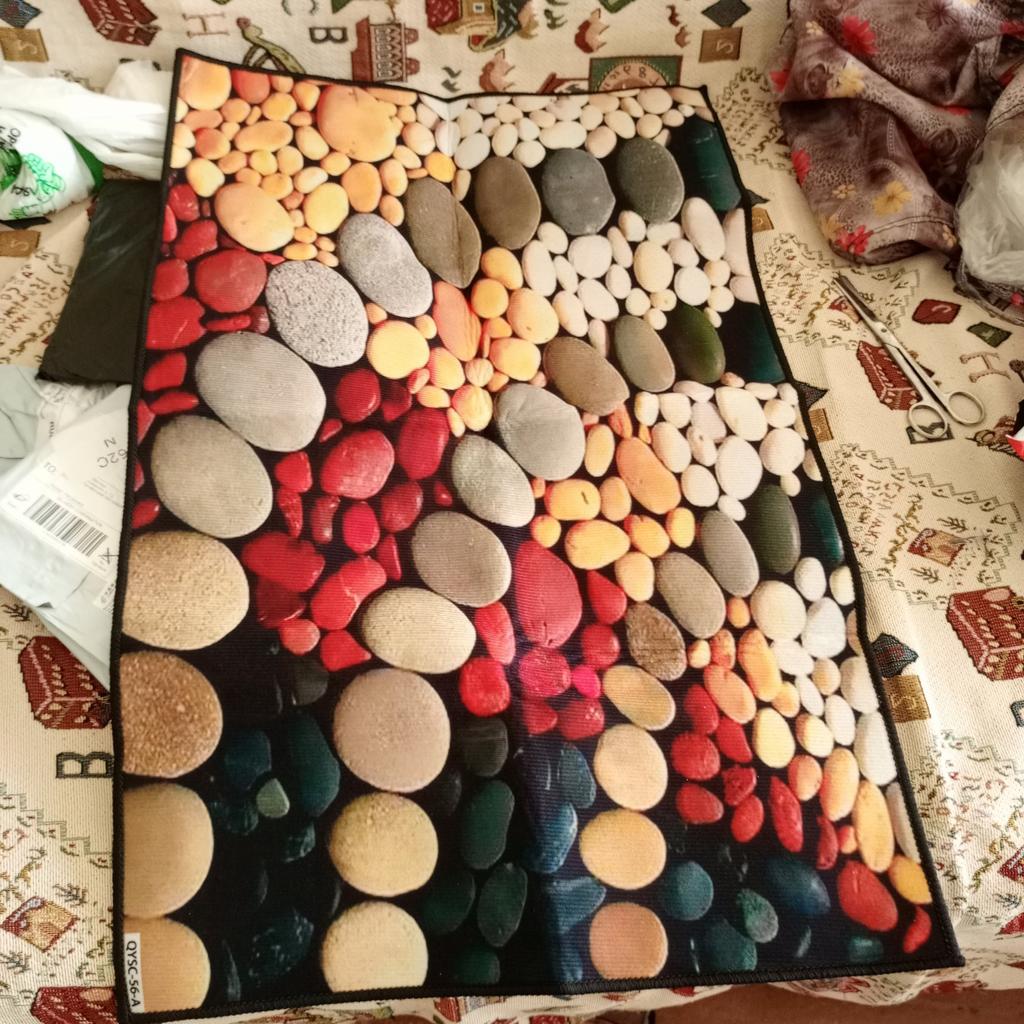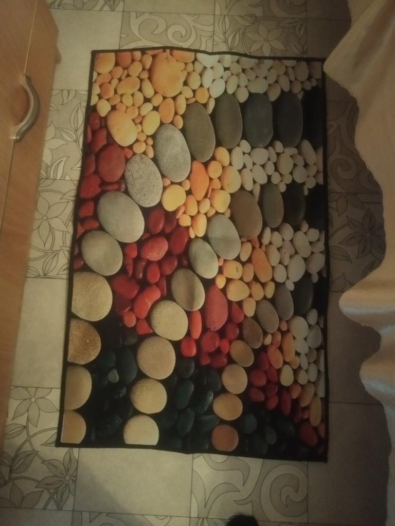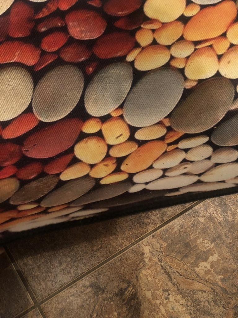 Bright, beautiful, but it slides on the tiles, so I’m taking off a star