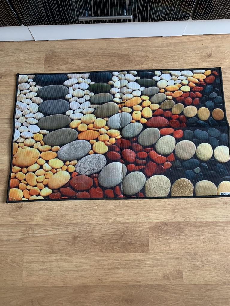 Thin, synthetic, bright - suitable for a bathroom or hallway!