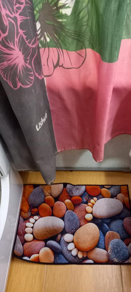 Very colorful, light, absorbs water well, a real decoration for the bathroom.