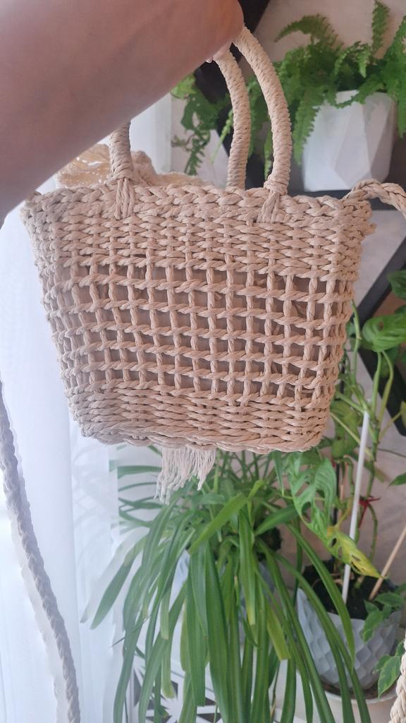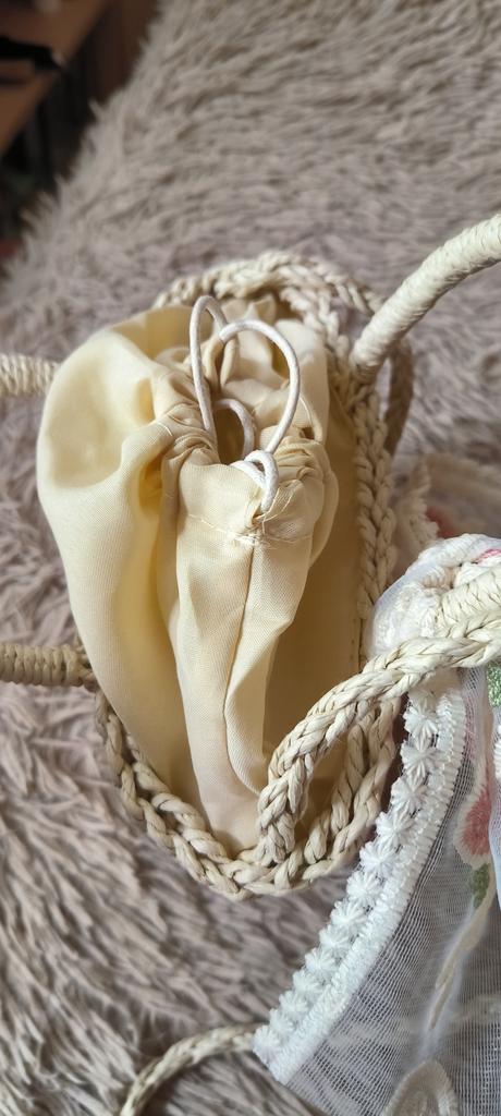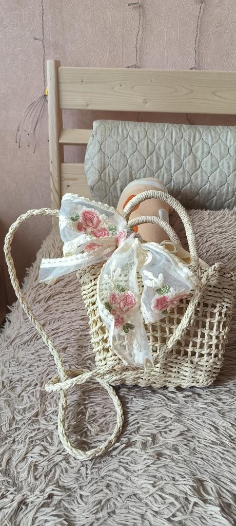 Yogodlns Floral Embroidery Bow Decor Straw Bag Woven Hollow Shoulder Bucket Bag Holiday Beach Bag Summer Crossbody Bag Handbag