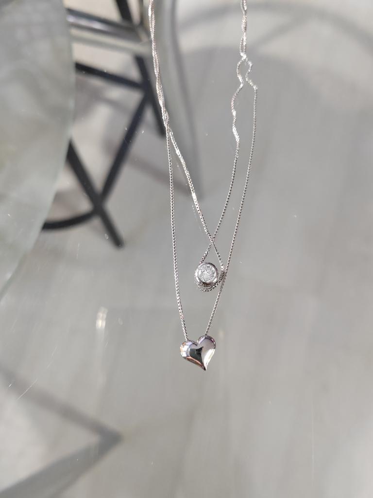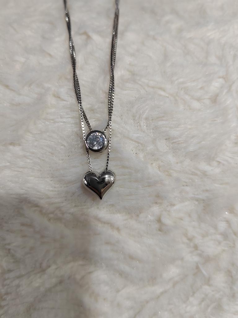 ANENJERY Women'S Fashion Jewelry Necklace Double Layer Chain Zircon Heart Pendants Necklaces For Women Kolye Choker S-N157