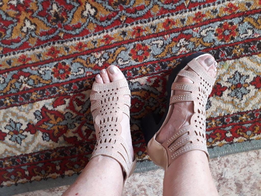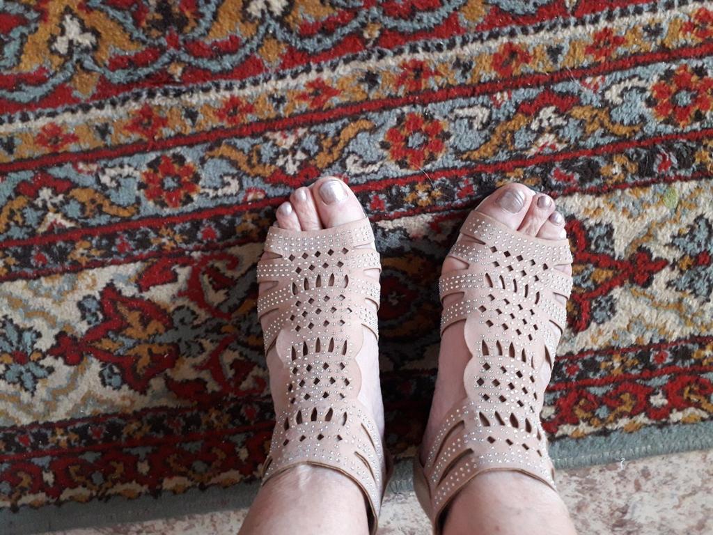 The sandals are very comfortable. You don't feel like you're on heels. They are light and the leg does not get tired. After a week of wearing them, they widened and the foot slipped in front, but that's OK. In general, they are very cool.