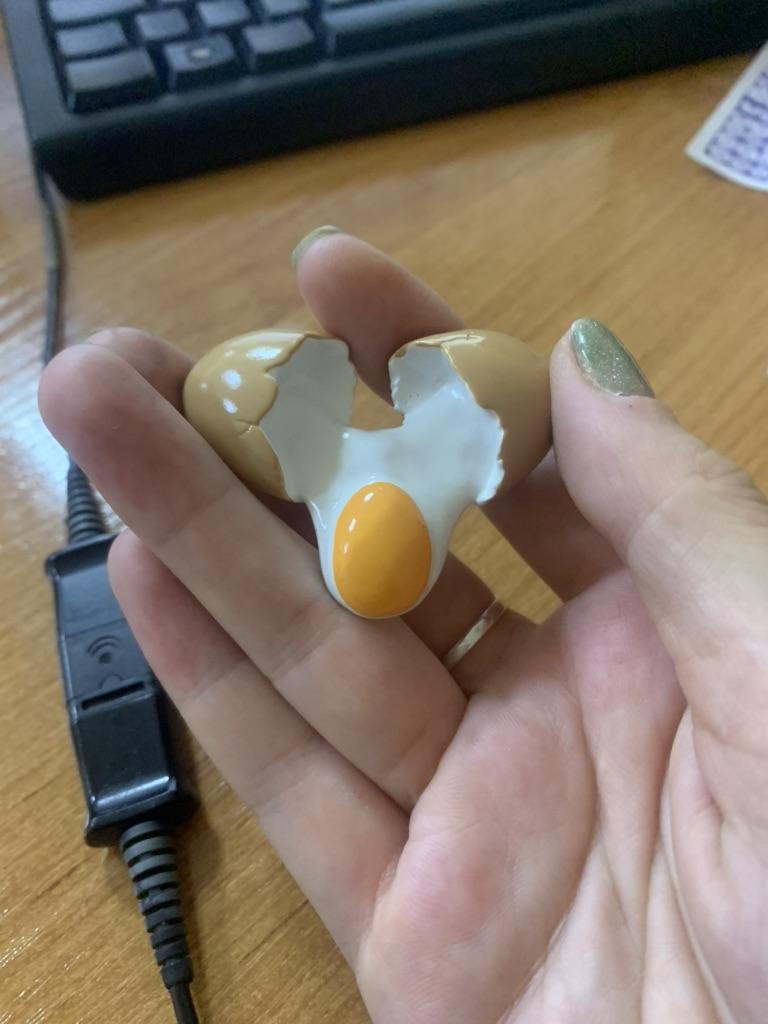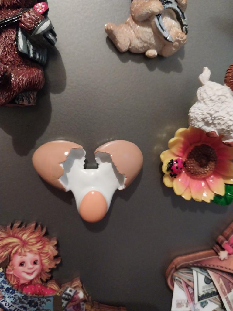 Cute fridge magnet in the shape of a broken egg 🍳 Quite miniature, but with good detail. Light and funny, I couldn't help but buy it.