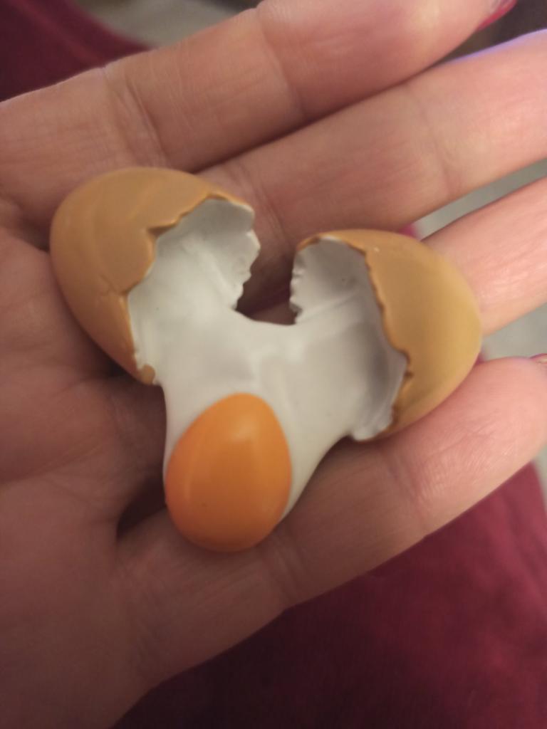 the size of the broken egg is very small and the color of the egg is not the same as in the photo, but grayer