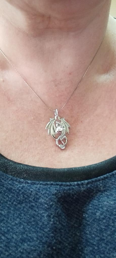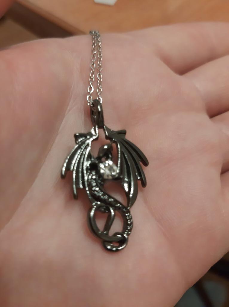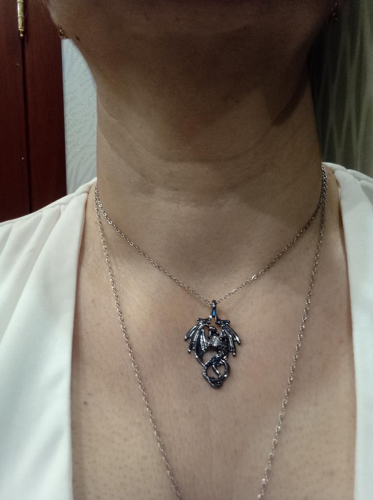 A very beautiful dragon pendant. Made very carefully and looks great. It's a pity that the chain is a little short. The order arrived on time. Packed in a bag and postal bag. I am adding to my review. I have been wearing my pendant with pleasure for quite a long time and often. Looks just as great as the first day. I'm very pleased. I recommend.