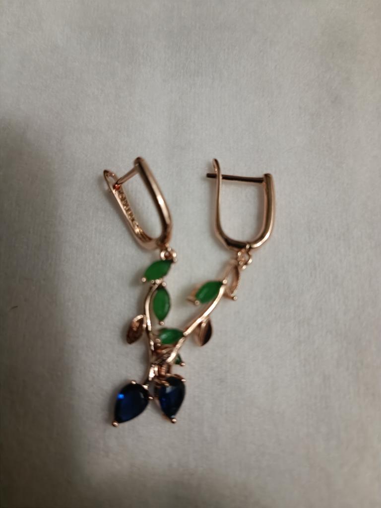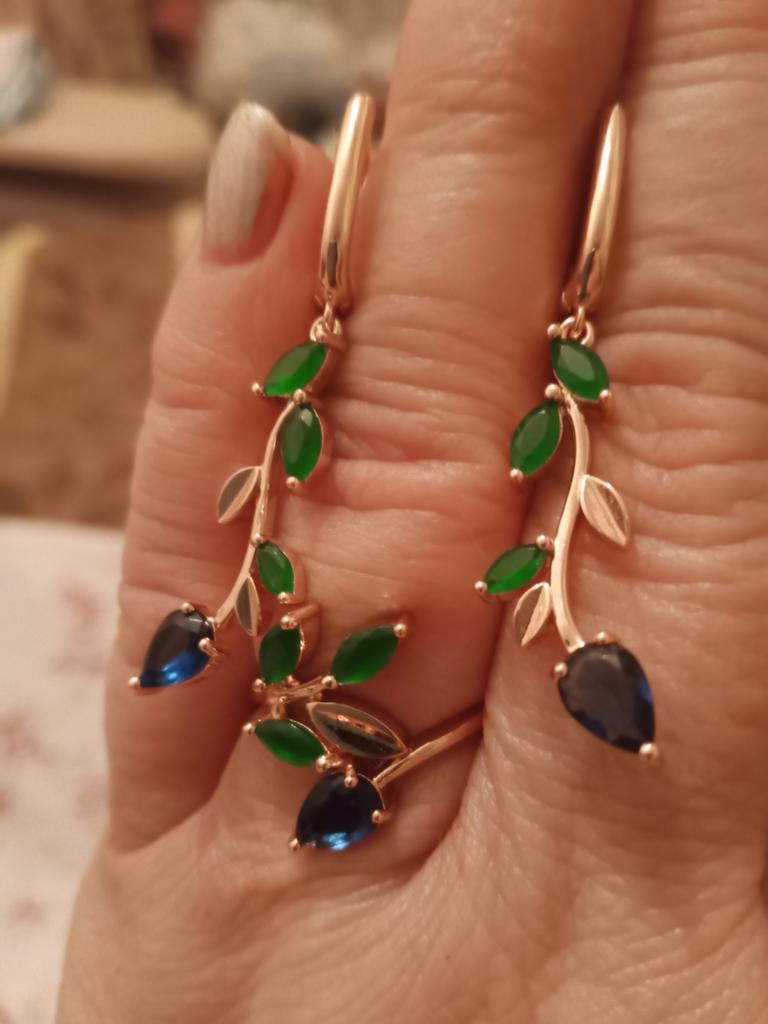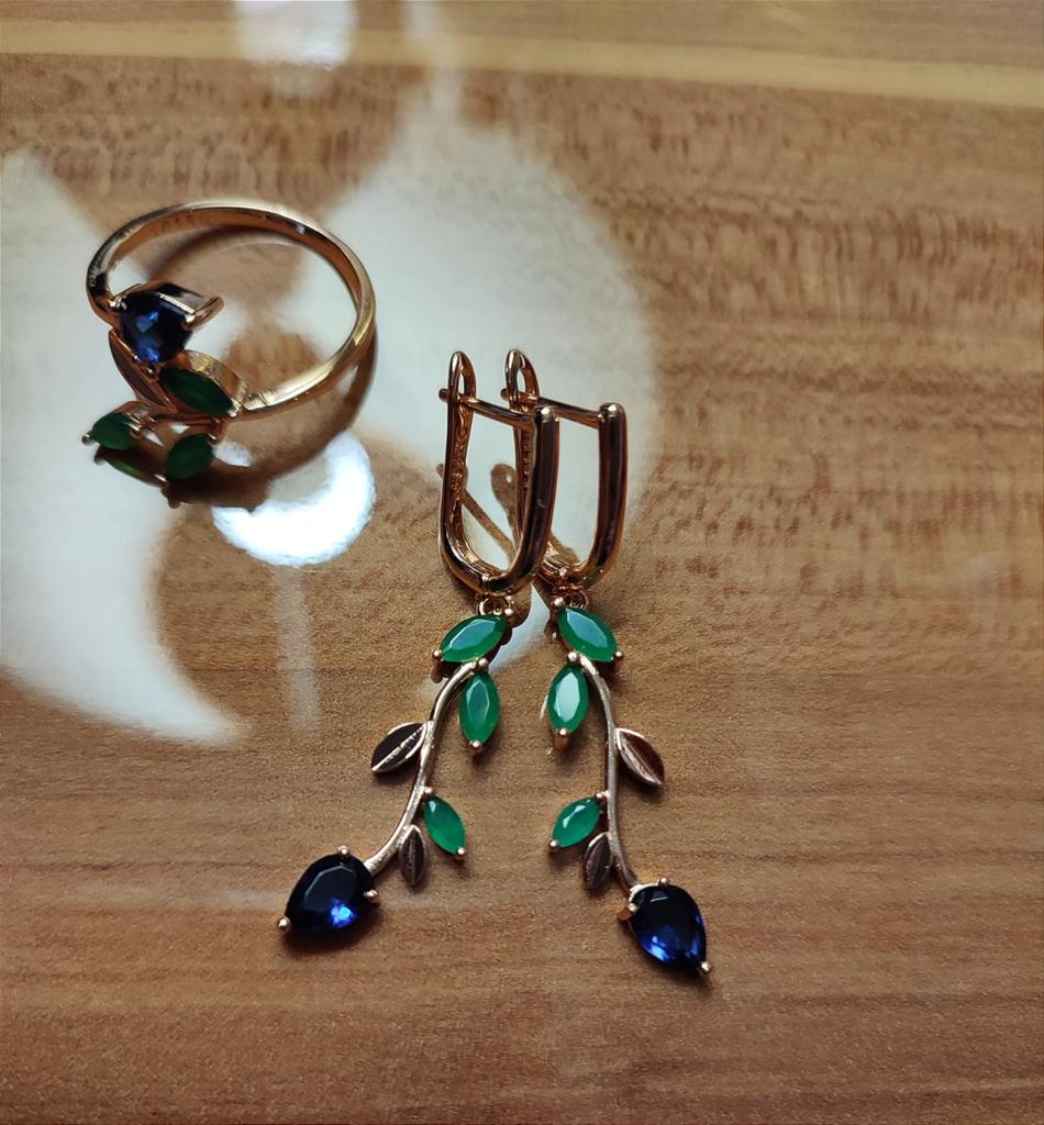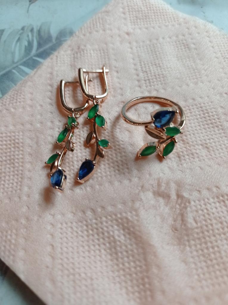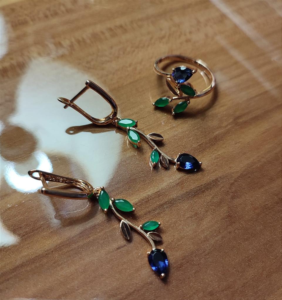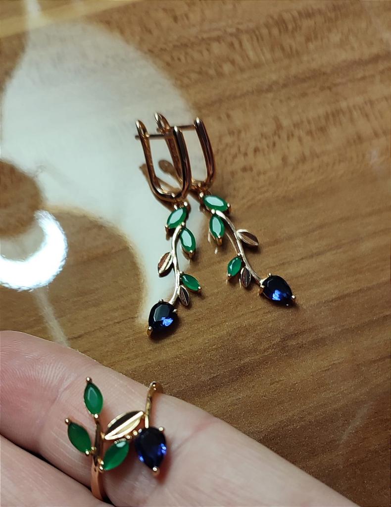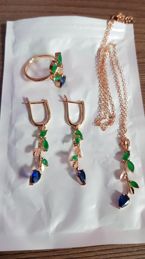 I also bought a pendant with a ring. The set is out. Well made, looks like a jeweler. Stones are like natural ones, especially green under natural agate. I hope it won't lick. Fasteners work well. I am supplementing. She put on glasses and, unfortunately, saw the peeling of the coating of one earring, although she had never worn them before. I was upset that there was a shortage, because the earrings are beautiful.