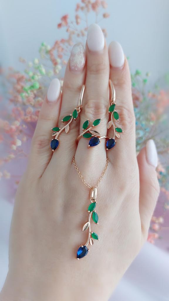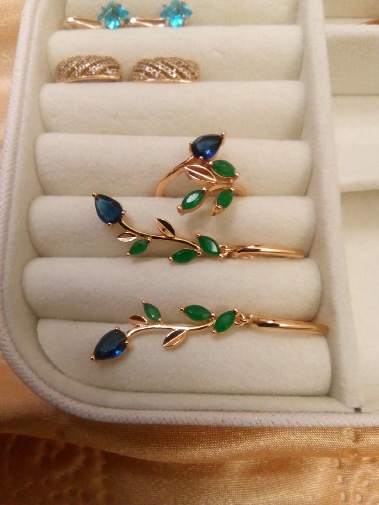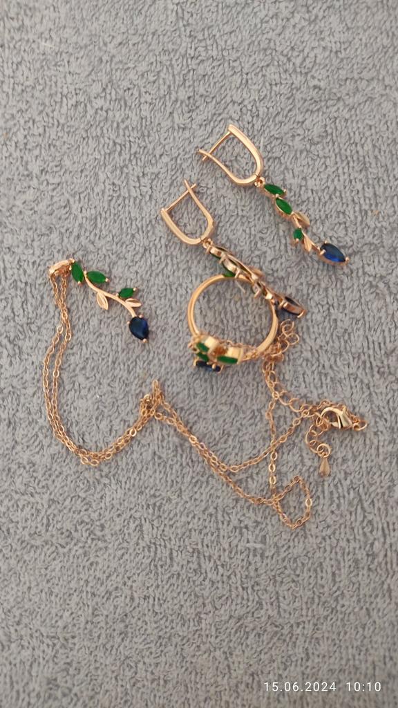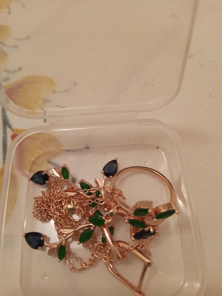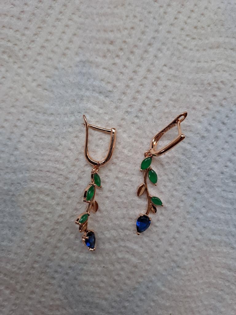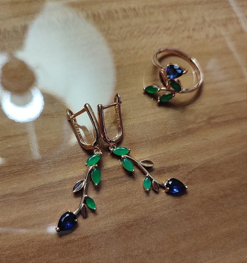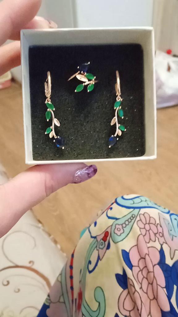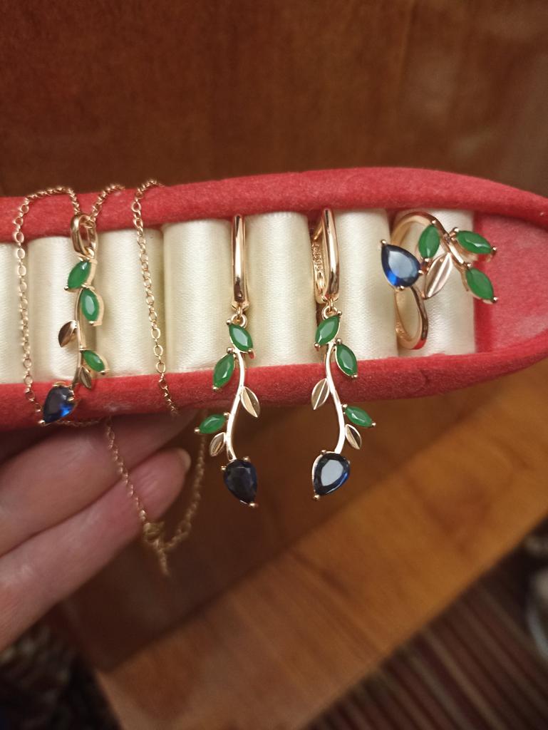 I also bought a pendant with a ring. The set is out. Well made, looks like a jeweler. Stones are like natural ones, especially green under natural agate. I hope it won't lick. Fasteners work well. I am supplementing. She put on glasses and, unfortunately, saw the peeling of the coating of one earring, although she had never worn them before. I was upset that there was a shortage, because the earrings are beautiful.