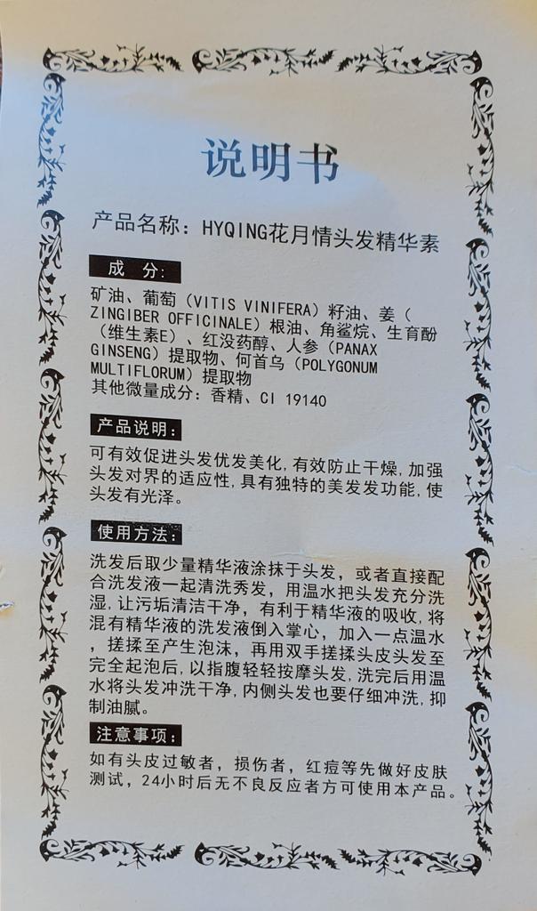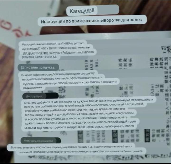Received the goods in 36 days. 🛵 The track was tracked completely. The arrival at the point of issue was announced by sms 📲. Packaging: air bubble envelope. Everything arrived whole and undamaged 🎁. The box is sealed in mica. The dates are clearly marked. Almost all information is in Chinese 🤔. There are instructions, but also in Chinese 😅. Essence for hair strengthening and growth 👱♀️ from the HYQING brand 🌾 20 ml. I read the reviews and wanted to try this magical remedy 😁. The first thing I want to warn you about is that the essence has a specific thick citrus-herbal aroma. Well, those who like ginger tea will understand me 🍵 😉. I love this, it smells divine to me 😁, but if you can't stand the smell of ginger, then you should refrain from buying it 👼. The method of use is quite simple: add the essence to your shampoo or mask (3 ml of essence per 100 ml of shampoo) and enjoy the result. I add to burdock oil and make masks for an hour or two 🕗. It is too early to talk about any significant result, because I used it only three times. But it seems to me that even this was enough, because the hair began to fall out less. The essence does not cause any allergic reactions in me personally. But we still remember that any new cosmetic product must be tested ☝️. I liked the essence, if you don't mind the smell of ginger, I recommend you try it 😉. If the review was helpful, support me with likes and dislikes ❤❤❤. Happy shopping and fast deliveries to everyone 🛍😊🚀🍁. If you need promo codes for 10% or 11%💰, go to my Telegram channel: Olena.joom.thebest or t.me/olenajoom 😘.