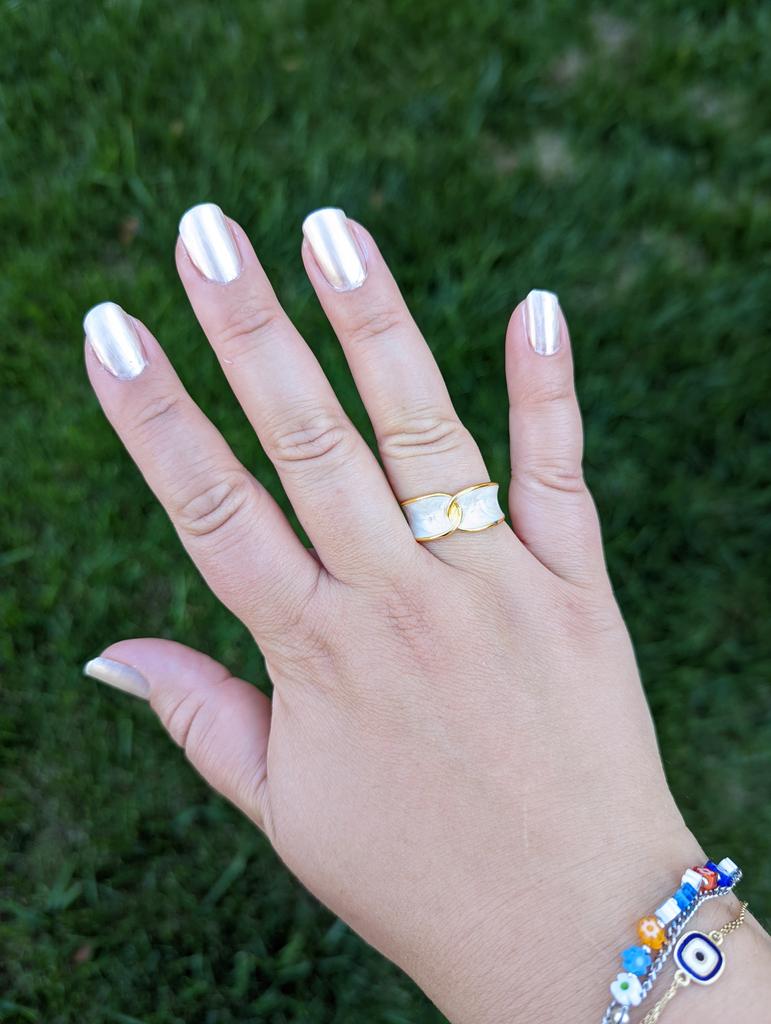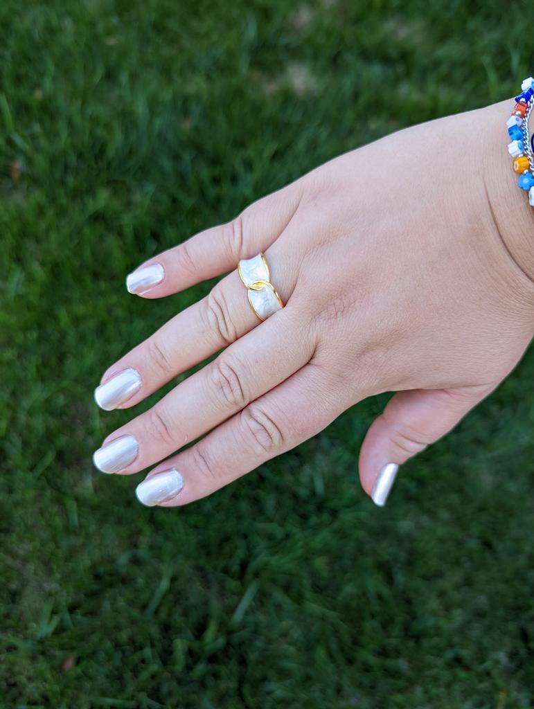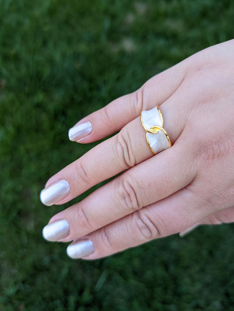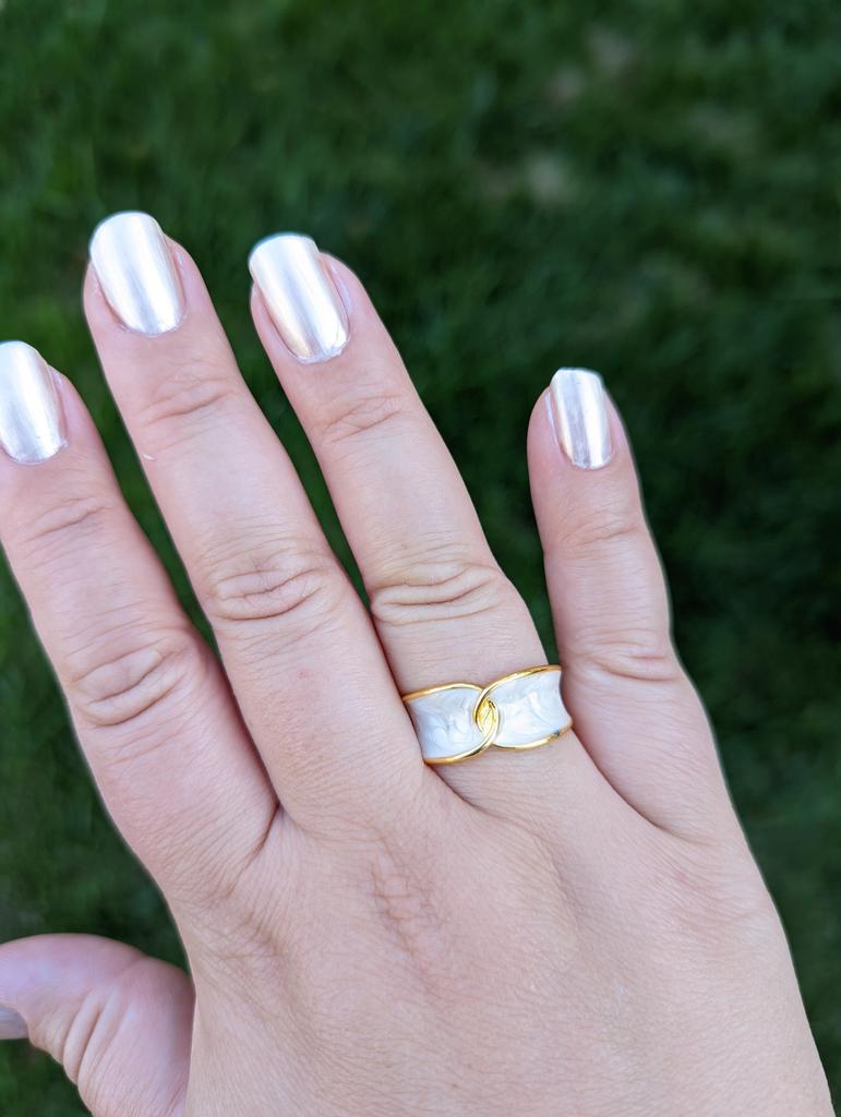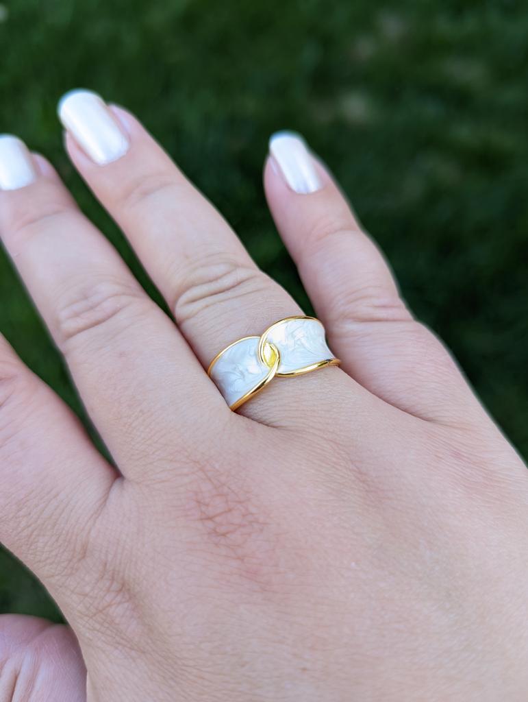 Adjustable Enamel Ring Brand: Lindon ⭐⭐⭐⭐⭐ This ring has enamel look mostly. I like the gold edges. It enhances the look of how beautiful is this ring. This ring is thick. So if you like wearing thick rings this one is very beautiful, I can recommend you. There are 6 color options. I was in between black and white and I decided on white. And I am happy with my choice. It is adjustable, you don't need to worry about the size. Just be gentle if you need to enlarge the ring. I recommend using makeup brush handles for enlarging nice and easily. You need to find a makeup brush that gradually thickens on all sides to do the job. I like this brand so much. I have so many jewelry from Lindon. And I am wearing them for several years by now, they are all in good condition, all has high quality. So I can recommend this brand. 🥰