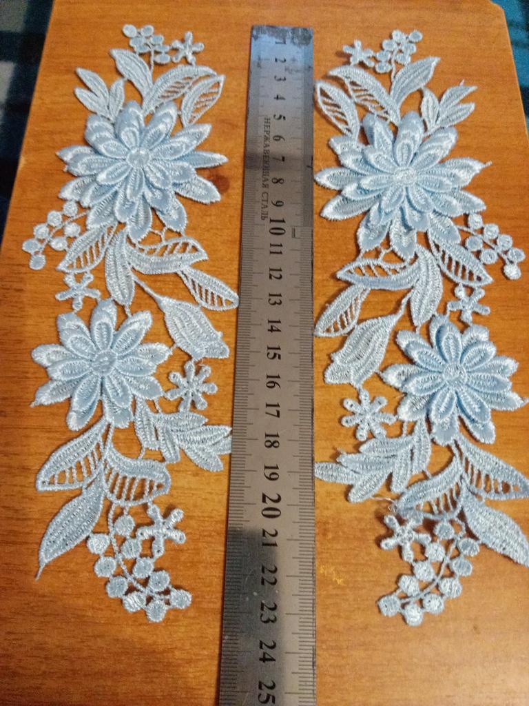 Arrived. Not bad voluminous lace, but ONE piece. I ordered a pair for sleeves under lace. or is it 4 flowers divided into two ?(*!*)