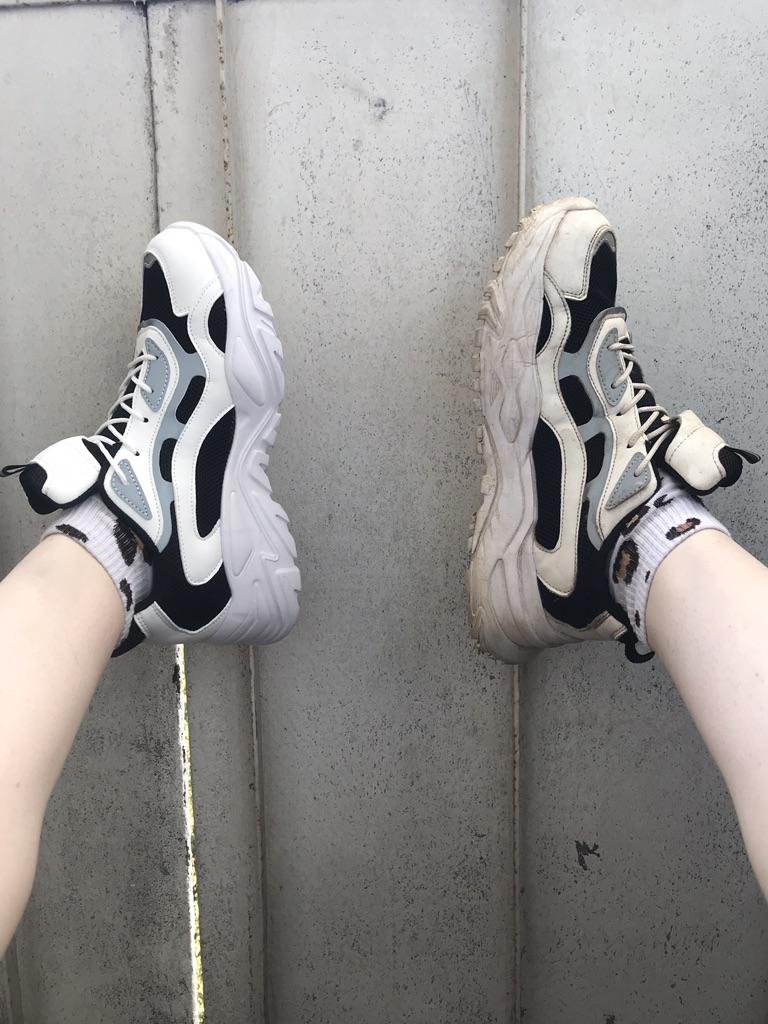 Iβm already ordering the second pair of these sneakers, while the first ones were exactly like in the photo, but these ones have a different sole, which means they donβt look the way I would like. Very disappointing. (Pictured are new sneakers on the left foot)