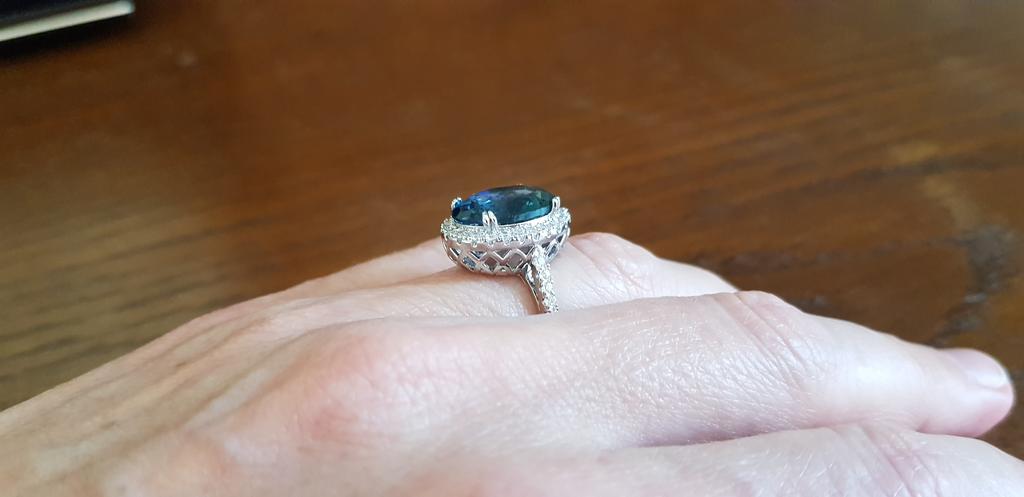 Very beautiful ring, looks decent, although the coating on the lower part of the band wore off a bit over the year, but I wore it very often, constant contact with water...