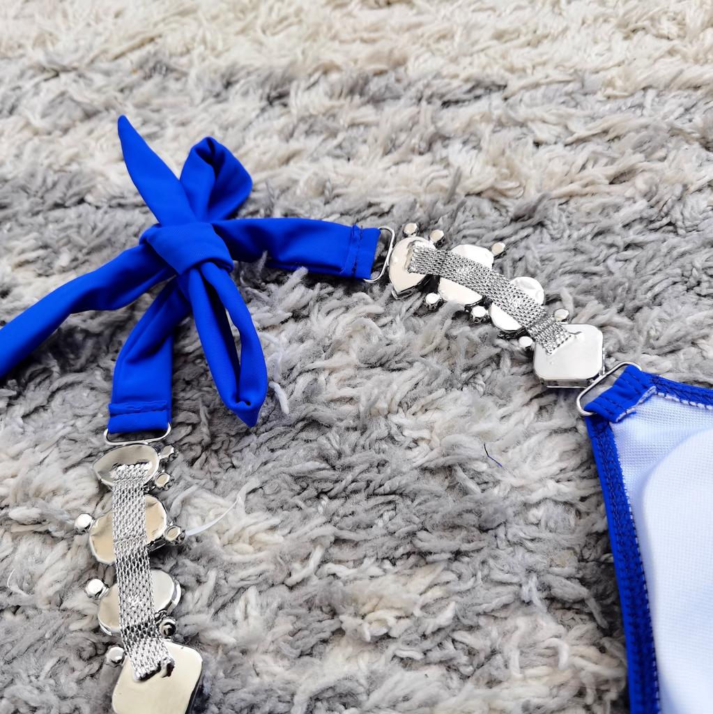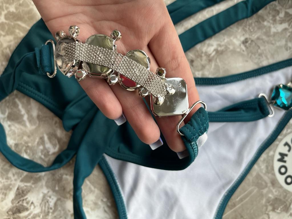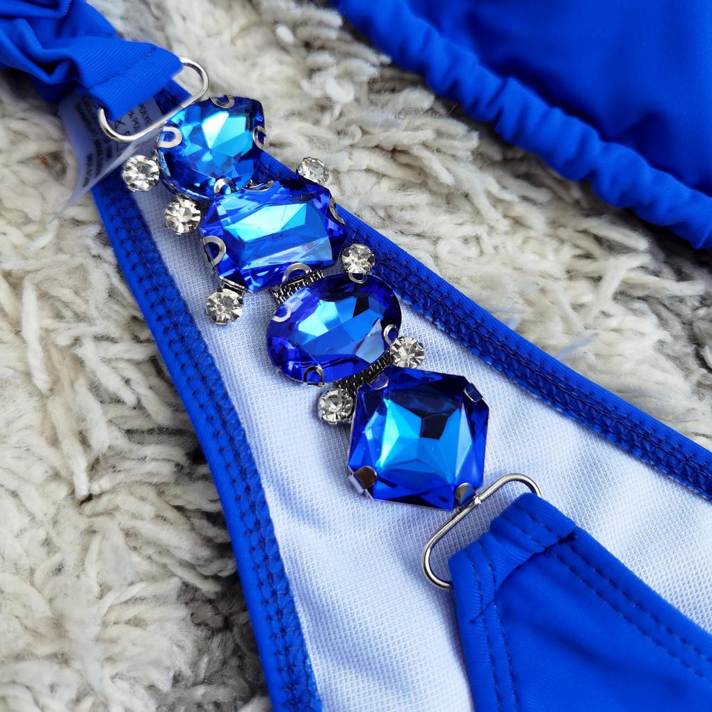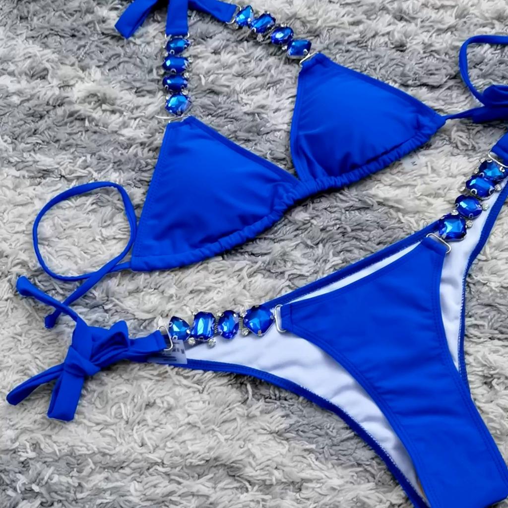 2Pcs/Set Split Bikini Rhinestones Metal Chain Pure Color Sexy Adjustable Swimwear for Swimming