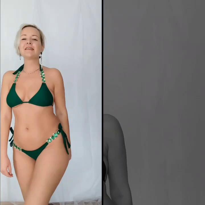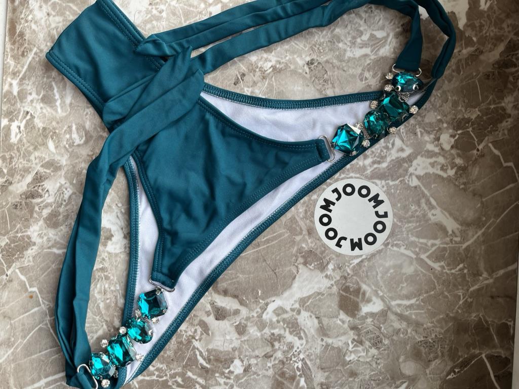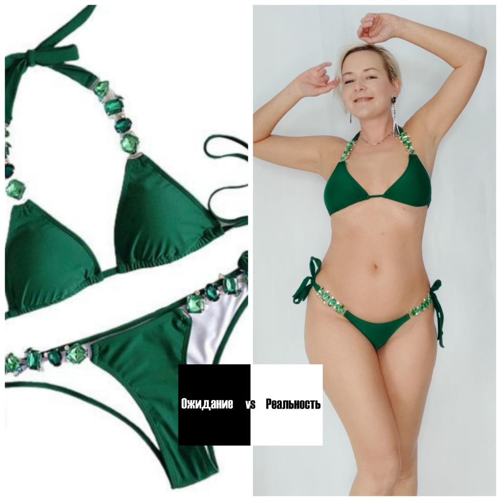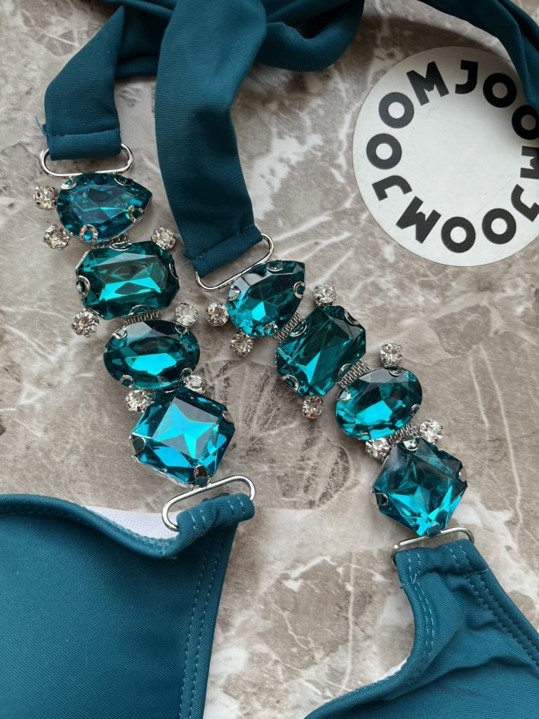 2Pcs/Set Split Bikini Rhinestones Metal Chain Pure Color Sexy Adjustable Swimwear for Swimming