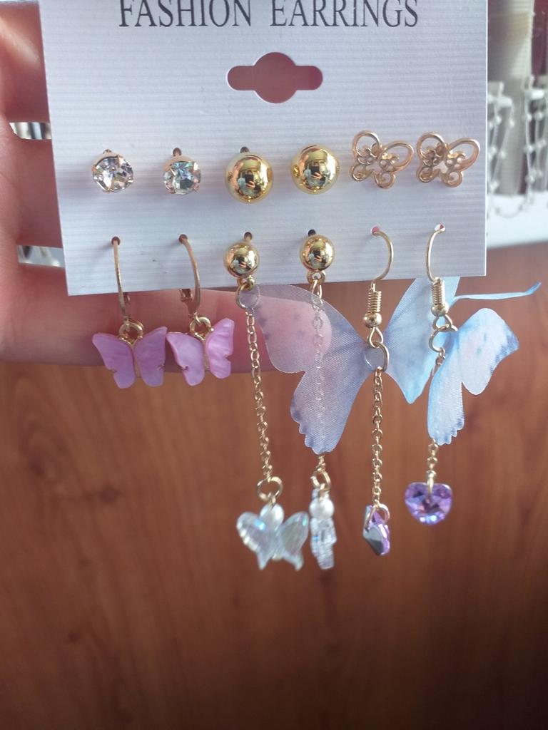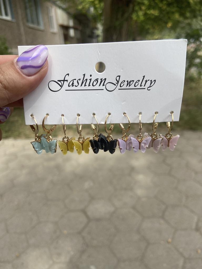 I am in love with this set of 5 pairs of butterfly earrings! Not only does it look great, but it also gives me tons of options to create a stylish look. Each pair of earrings has its own unique butterfly color shade, making them one of a kind. I can choose earrings for any mood or style of clothing. This allows me to experiment with my look and add bright accents to my image. The material of the earrings looks high quality and well made. They are light in weight and pleasant to wear. The clasps are strong and secure, which keeps my earrings from falling out while I'm on the move. With a set of 5 pairs, I have a wide selection to choose earrings for any occasion or mood. I can wear them one by one or combine the colors of the butterflies to create original sets. Another plus is the ability to share earrings with friends or family. I can give them as gifts or exchange them with loved ones, which adds extra joy and satisfaction. In general, I am completely satisfied with the set. They look great, are comfortable to wear and provide many options for creating various images. I recommend this set to everyone who loves jewelry with elements of nature and wants to add brightness to their style.