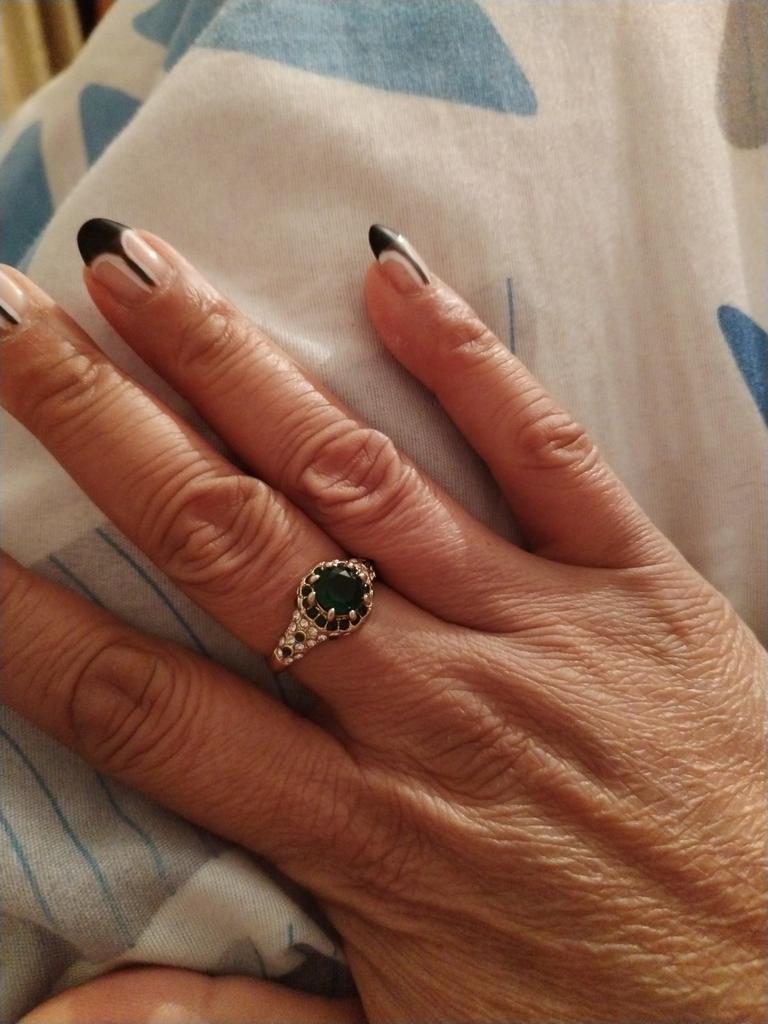 A delicate, sweet ring, I also first ordered it for my sister, with a pink stone, and bought one for myself with a green one.