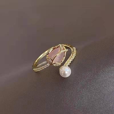 Tulip Pearl Ring, Women's Fashion Flower Bud Niche Design, Index Finger Rings