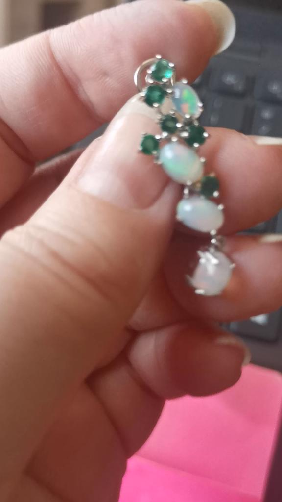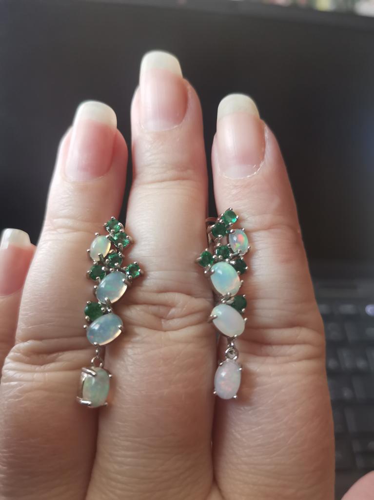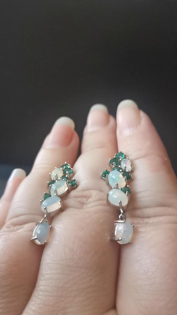 Colorful Gemstone Opal Emerald Earring ,natural Ethiopia Opal Zambia Green Emerald Jewelry 925 Sterling Silver