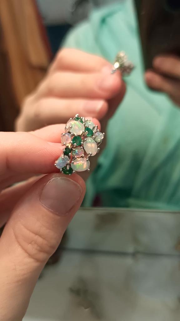 New Design Fancy Opal Emerald Jewelry Set Natural Gemstone 925 Sterling Silver Ring Clasp Earring Women Nice Gift