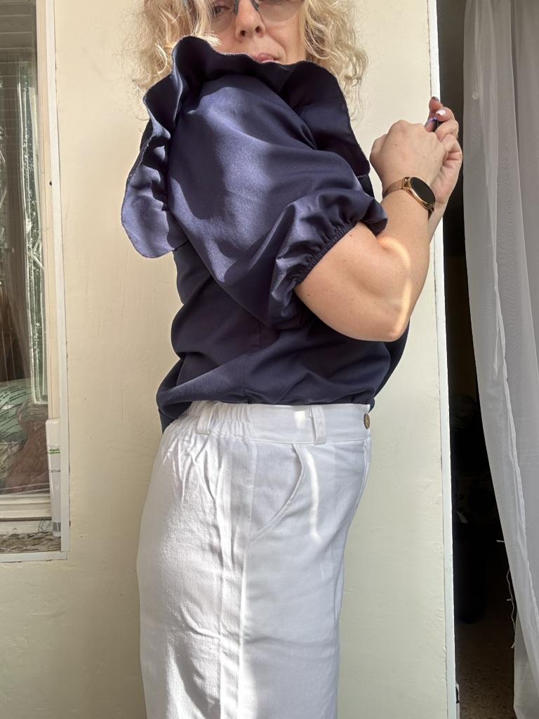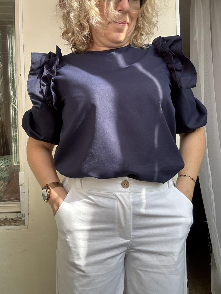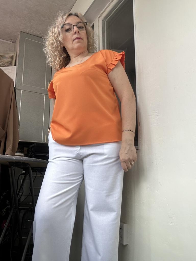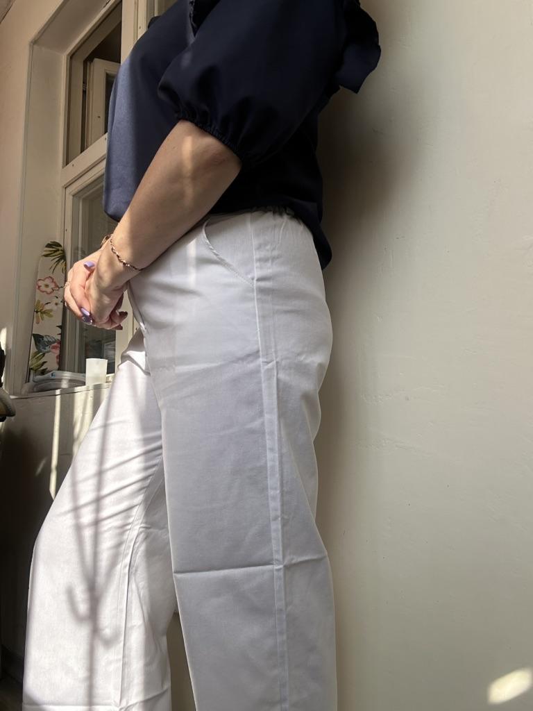 The trousers are of good quality, slightly see-through, best worn with seamless nude-colored underwear. Excellent for summer. Size 3xl fit a size 48.