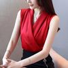 Women's Clothing 2022 Spring Summer New Temperament Simplicity V-Neck Solid Color Sleeveless Chiffon Shirt Loose Women's Blouse