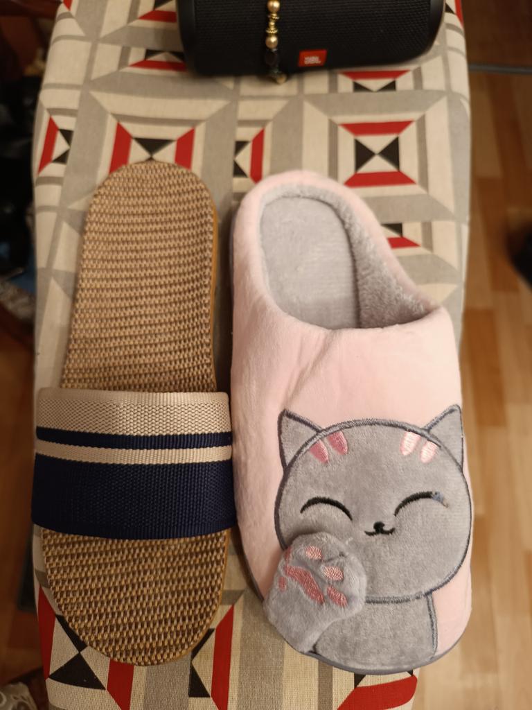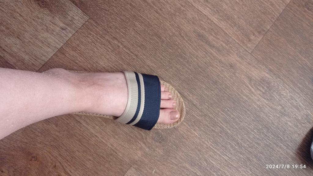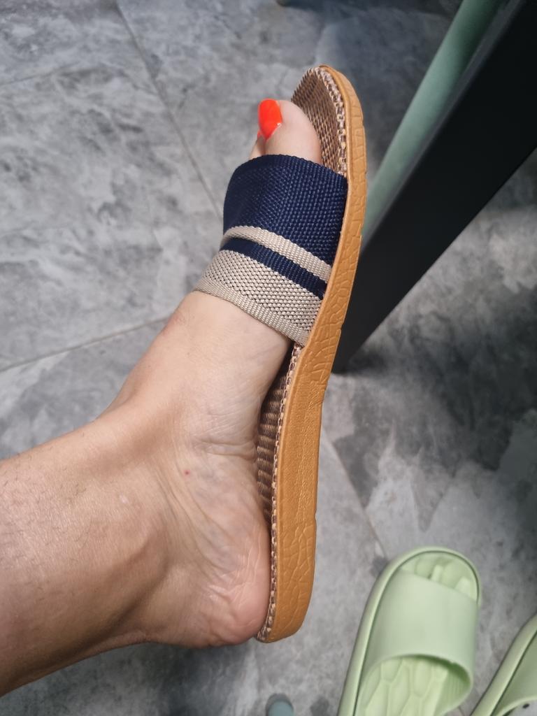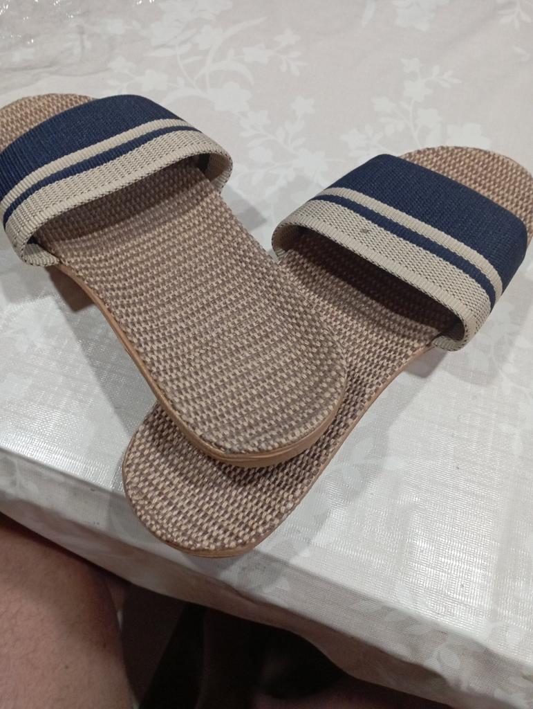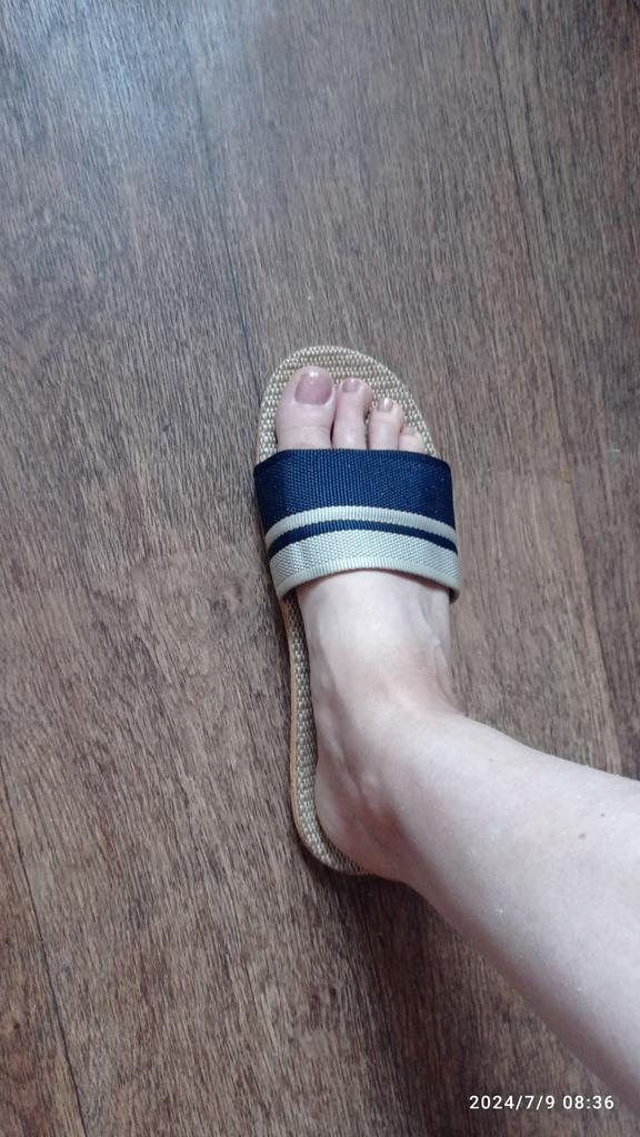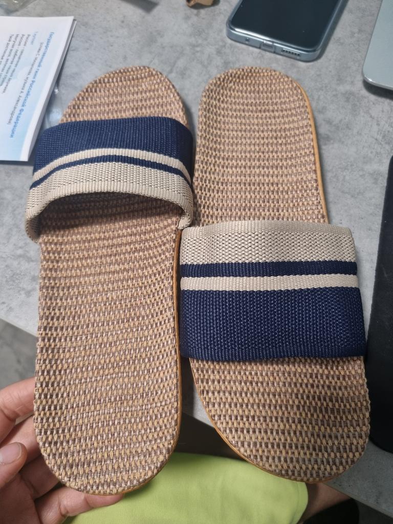 For now, I'm giving 4 stars because I don't know how they will wear. I will write in a couple of months. I bought it for 5.57 euros. Benefits. 1. Light. - both weigh 130 grams. As in that advertisement: Vzula - and forgot . 2. The sole material is EVA, not rubber, with a pattern, so it does not slip. 3. Top - fabric, dense. 4. The insoles are also made of fabric. In appearance, everything is done well. Time will tell to what extent ! There is only one drawback - there is a slight unpleasant smell. But will anyone smell them on their feet? π€ͺ Will weather out over time ! Slippers for narrow feet, wide part 8 cm. In a week, the smell has faded. Slippers are only for home, the sole deforms on the street. The sole will peel off from ironing in the machine! Do not soak for a long time, because it will also peel off ! They do not go to the beach, because the sand cannot be shaken off. For such money, I expected better quality.