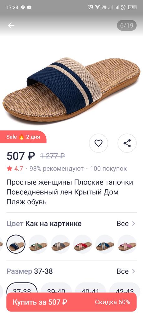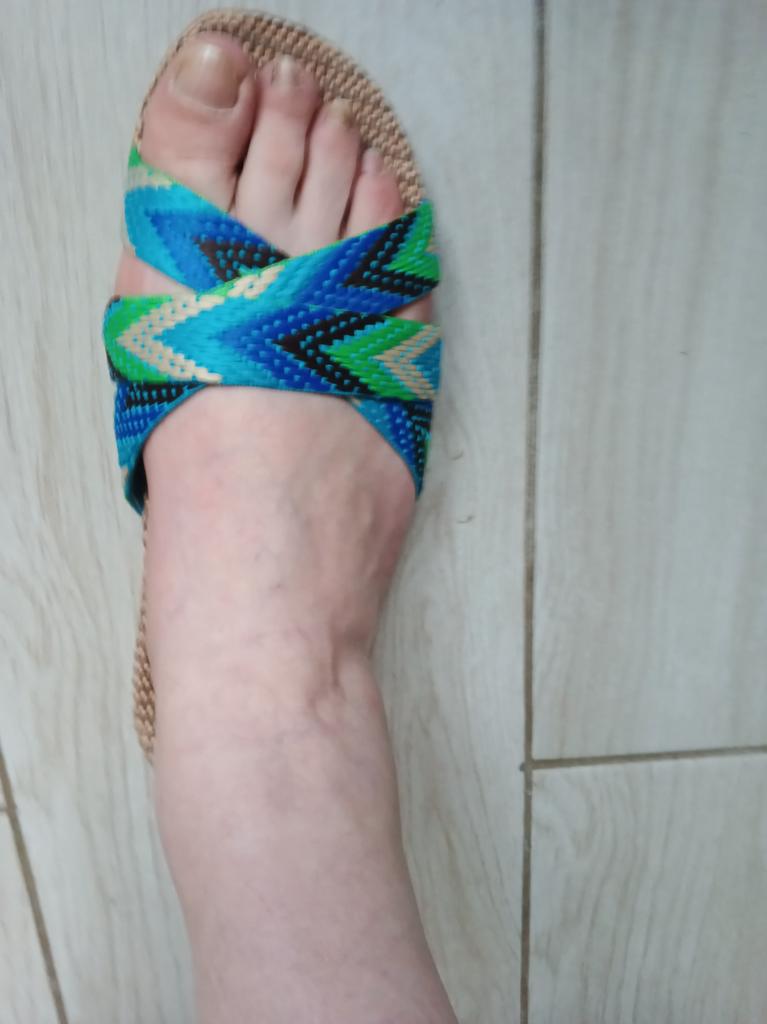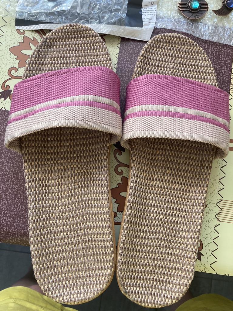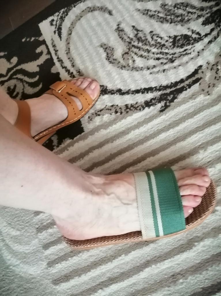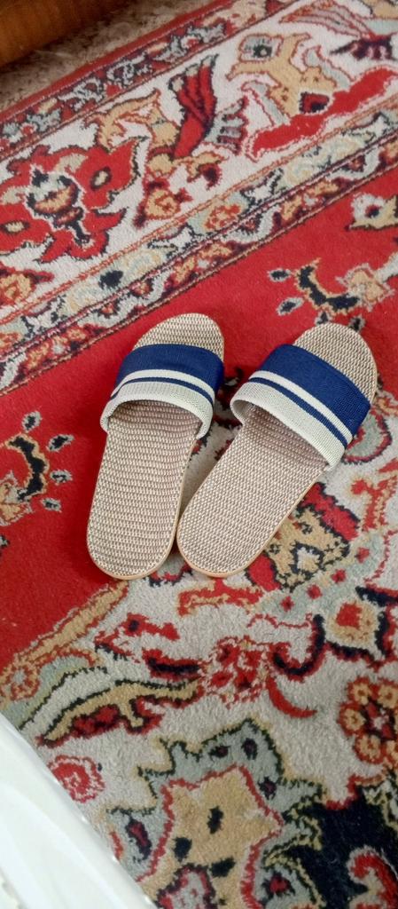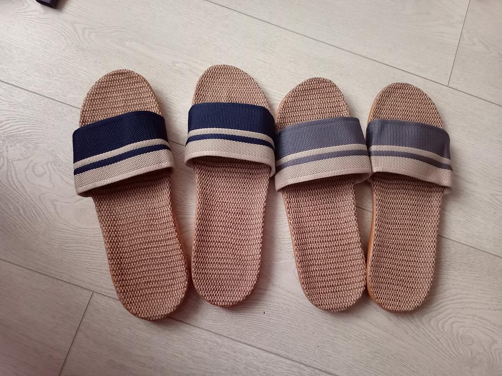 For now, I'm giving 4 stars because I don't know how they will wear. I will write in a couple of months. I bought it for 5.57 euros. Benefits. 1. Light. - both weigh 130 grams. As in that advertisement: Vzula - and forgot . 2. The sole material is EVA, not rubber, with a pattern, so it does not slip. 3. Top - fabric, dense. 4. The insoles are also made of fabric. In appearance, everything is done well. Time will tell to what extent ! There is only one drawback - there is a slight unpleasant smell. But will anyone smell them on their feet? π€ͺ Will weather out over time ! Slippers for narrow feet, wide part 8 cm. In a week, the smell has faded. Slippers are only for home, the sole deforms on the street. The sole will peel off from ironing in the machine! Do not soak for a long time, because it will also peel off ! They do not go to the beach, because the sand cannot be shaken off. For such money, I expected better quality.