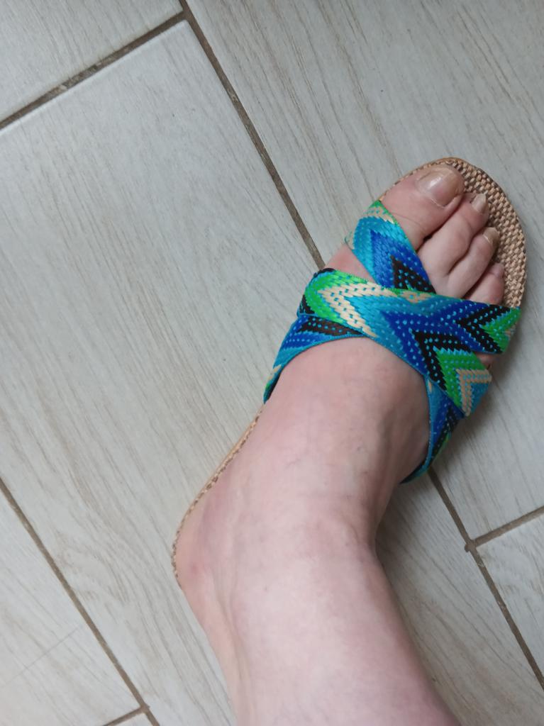 These are the second slippers, because with the first ones I made a mistake with the size, they run too big. I took a size smaller than mine and they fit both in length and fullness.