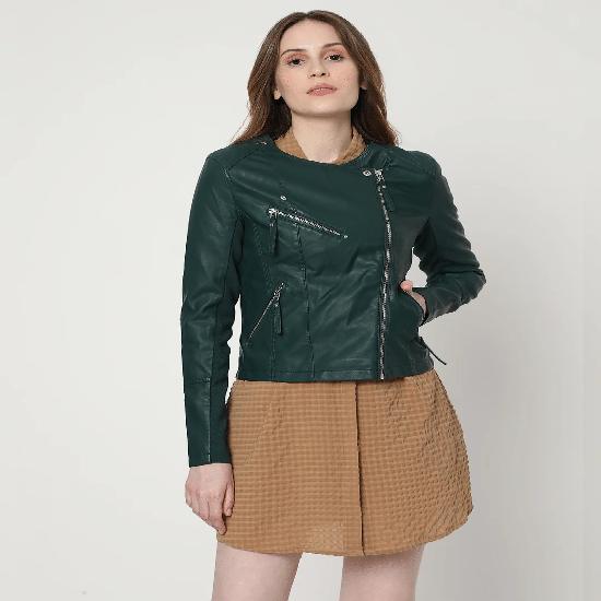 Noora Women's Green Leather Biker Jacket Party Wear Jacket Casual Jacket Gift For Her
