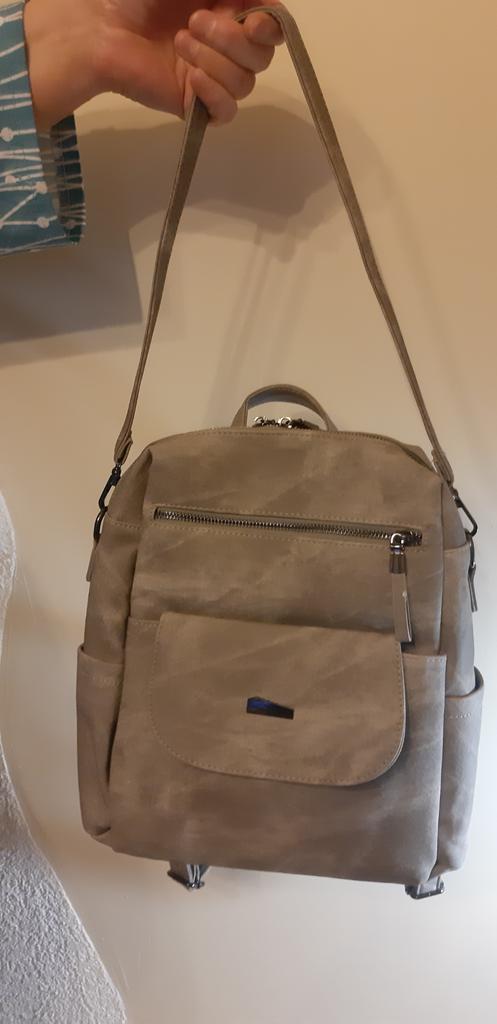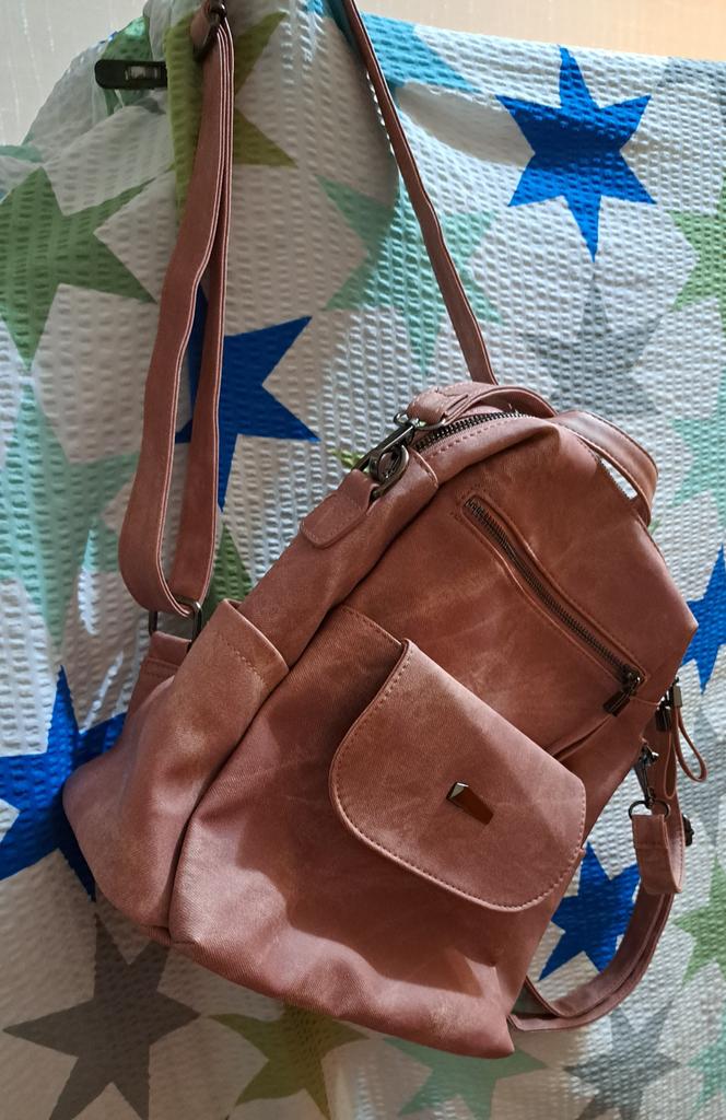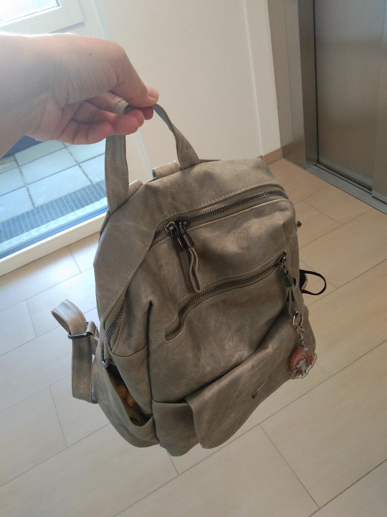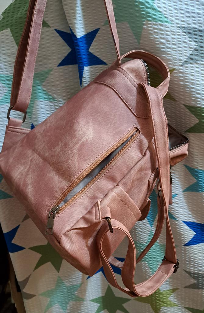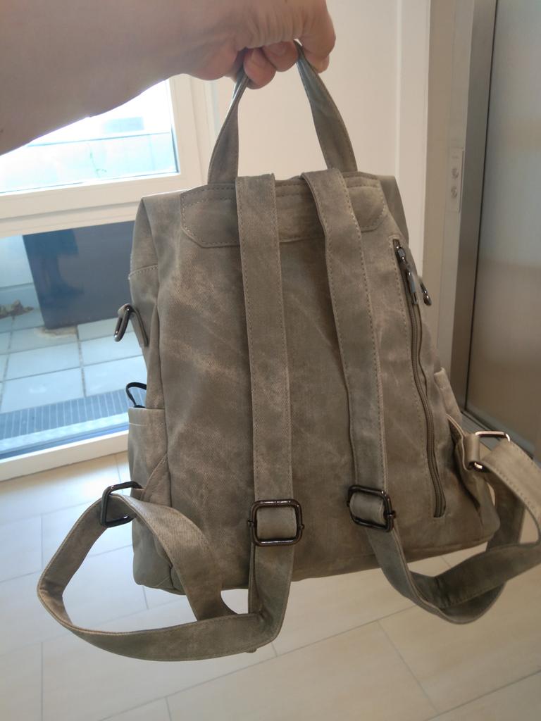 The backpack is just great! The only thing is that the glue stinks a lot, I took it out to the balcony to air out a little. It is not too big and not too small, roomy, but not bulky, as it should be. The material resembles artificial leather, but it is not. Seems to be waterproof. There are many pockets inside, the fasteners are intact, they work fine, no complaints. The lining is whole. I recommend it before buying, but be prepared for the fact that it will stink the first time